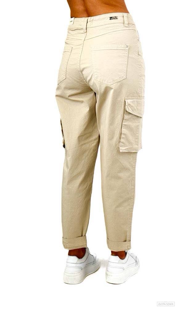 Wygodne beżowe spodnie z bawełny z bocznymi kieszeniami i zwężaną nogawką. Idealne na co dzień, do pracy i na wyjazdy. Styl casual i komfort w jednym.