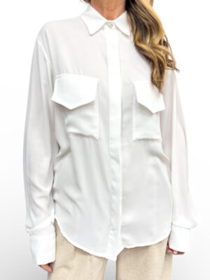 Biała klasyczna koszula damska z bawełny od marki Imperial. Luźny krój, i długi rękaw zapinana na guziki – idealna do codziennych i eleganckich stylizacji.