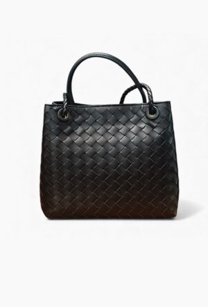 Klasyczna, czarna pleciona torebka ze skóry naturalnej z dodatkiem złota. Idealna na co dzień — połączenie klasy, jakości i ponadczasowego designu.