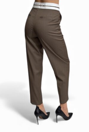 Klasyczne spodnie z materiału, cygaretki taupe od marki Pia B. Klasyczny fason, ozdobny pas w najmodniejszym kolorze sezonu Jesień/Zima 2025!