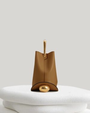 Brązowa, skórzana torebka damska typu worek ze złotymi okuciami. Szyk i klasa w jednym. Stylowy i ponadczasowy dodatek dla każdej kobiety od włoskiej marki.