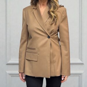 Elegancka marynarka damska w kolorze camel od marki Vicolo – klasyczny, taliowany fason, ponadczasowy styl, wysoka jakość i uniwersalne zastosowanie.