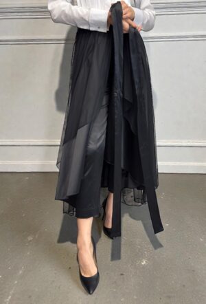 Elegancka czarna spódnica z tiulu midi z efektownym wiązaniem w pasie. Idealna na co dzień, do pracy i na wyjątkowe okazje od włoskiej marki Siste’s.