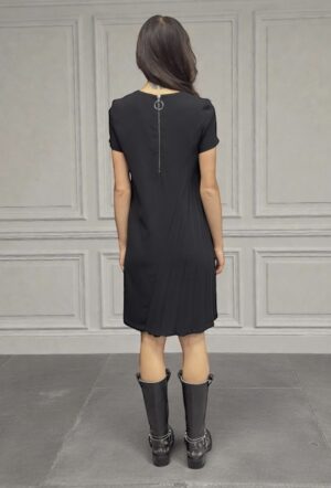Czarna luźna sukienka z krótkim rękawem i plisą od marki Lauren Vidal. Idealna na co dzień, do pracy i na specjalne okazje. Przekonaj się sama!