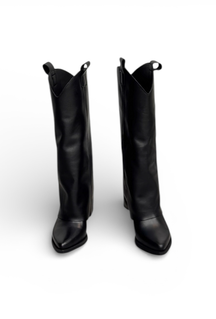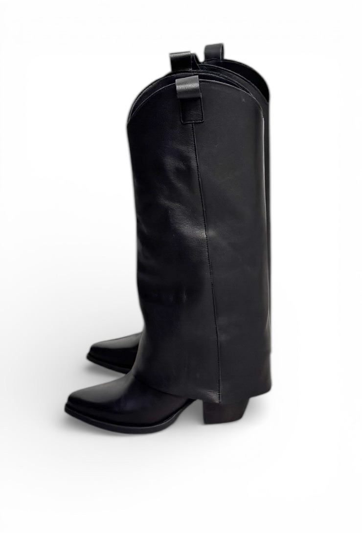 Czarne kozaki na obcasie ze skóry naturalnej NatashiaCzarne kozaki na obcasie ze skóry naturalnej Natashia
