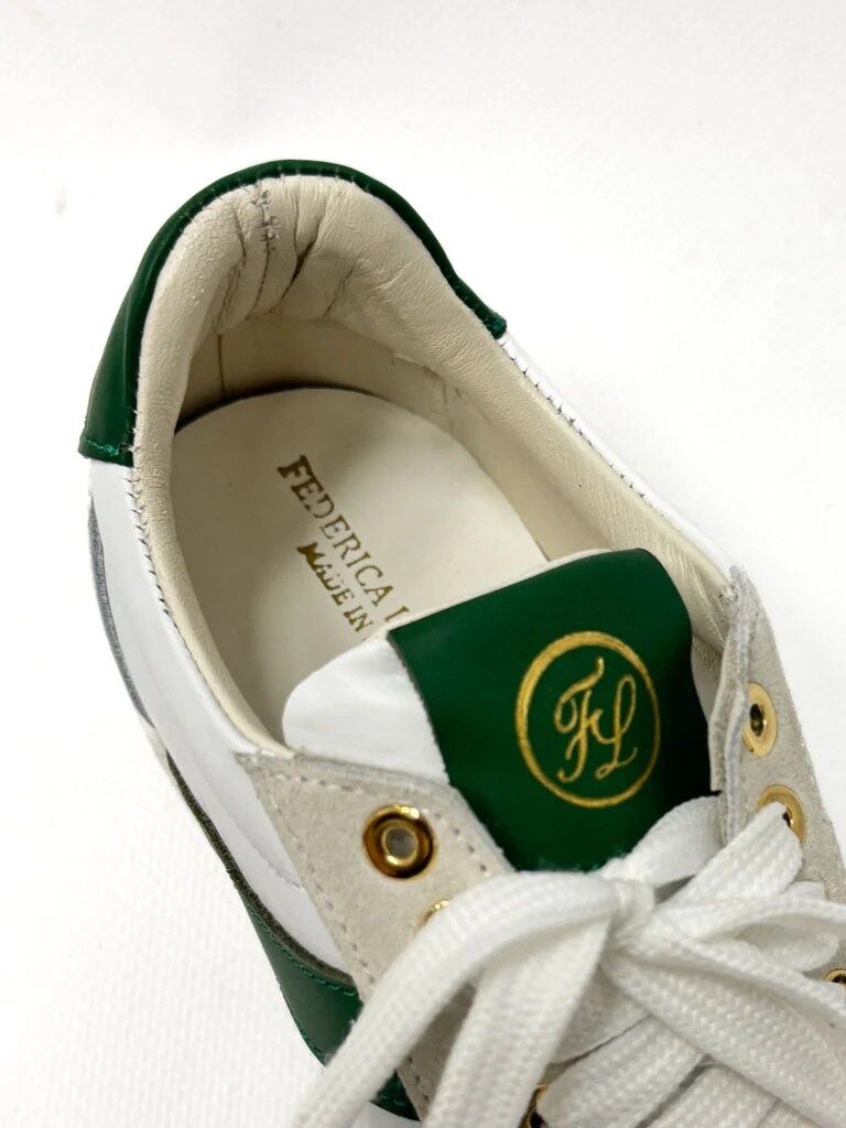 BUTY BIAŁE TRAMPKI Z ZIELONYMI ELEMENTAMI FEDERICA LANCIONI GIADA E4