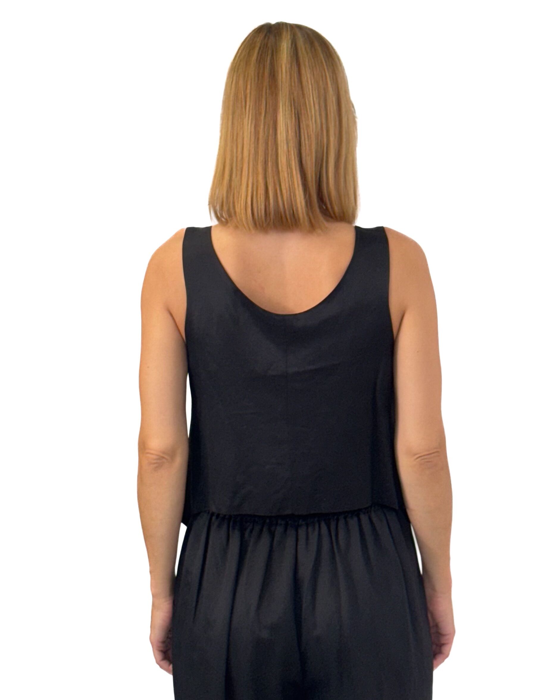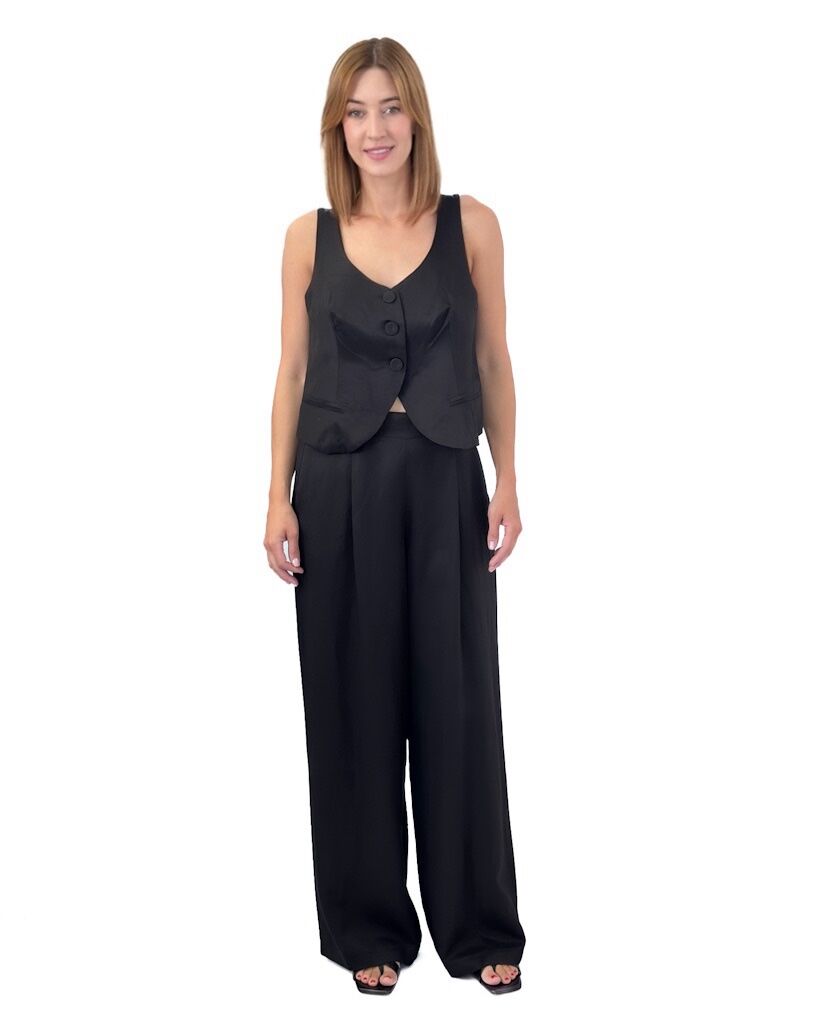 KAMIZELKA CZARNA ZAPINANA NA GUZIKI Z WISKOZY I LNU PIA B SACELI