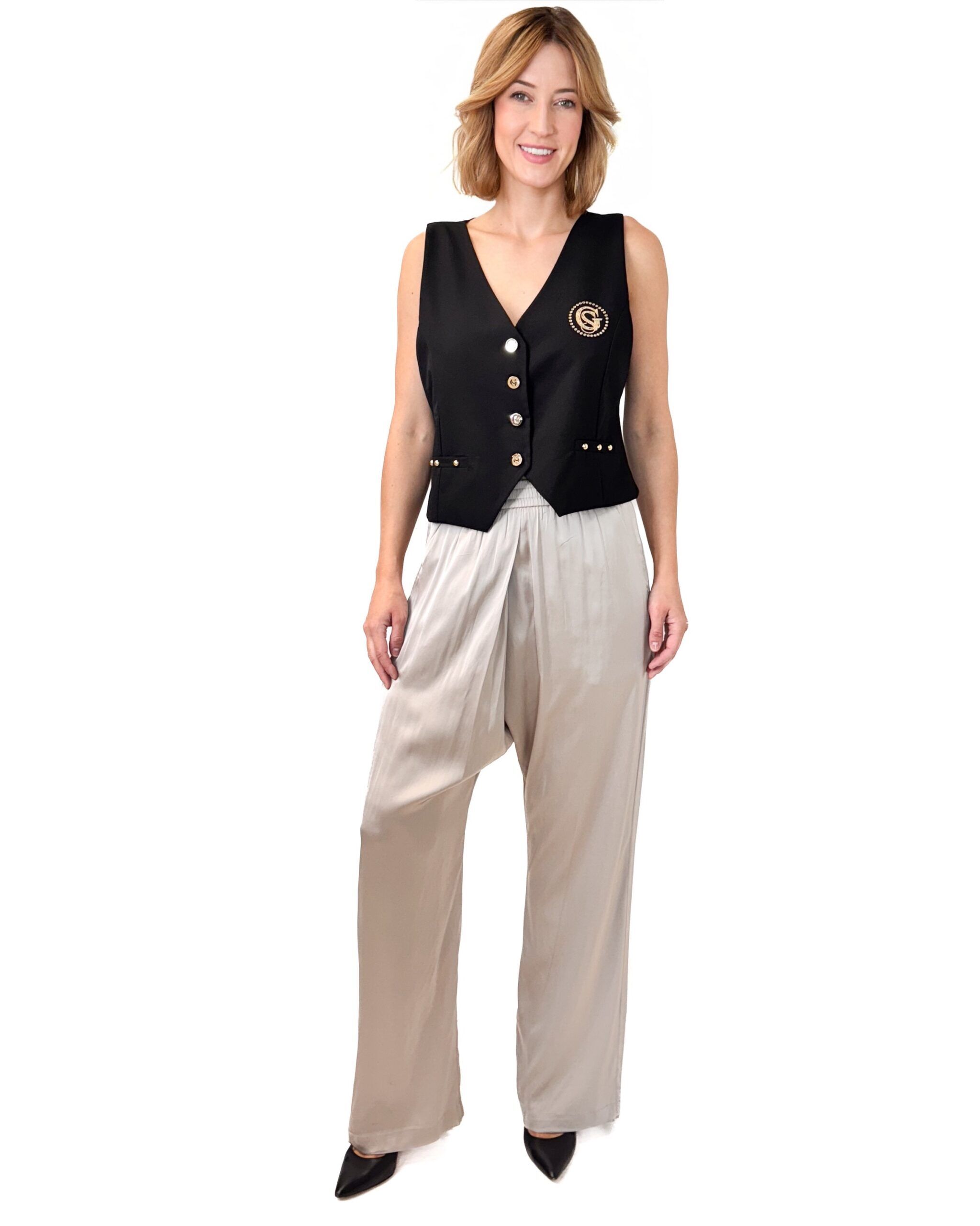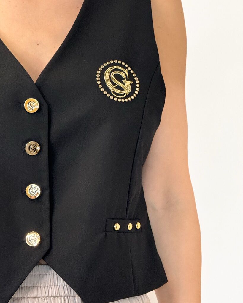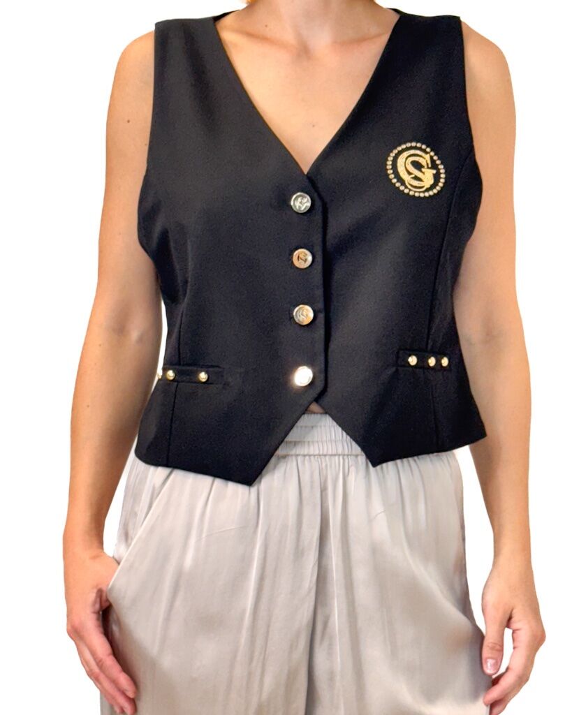 KAMIZELKA CZARNA DOPASOWANA Z MATERIAŁU GIL SANTUCCI 41CPT5162A244