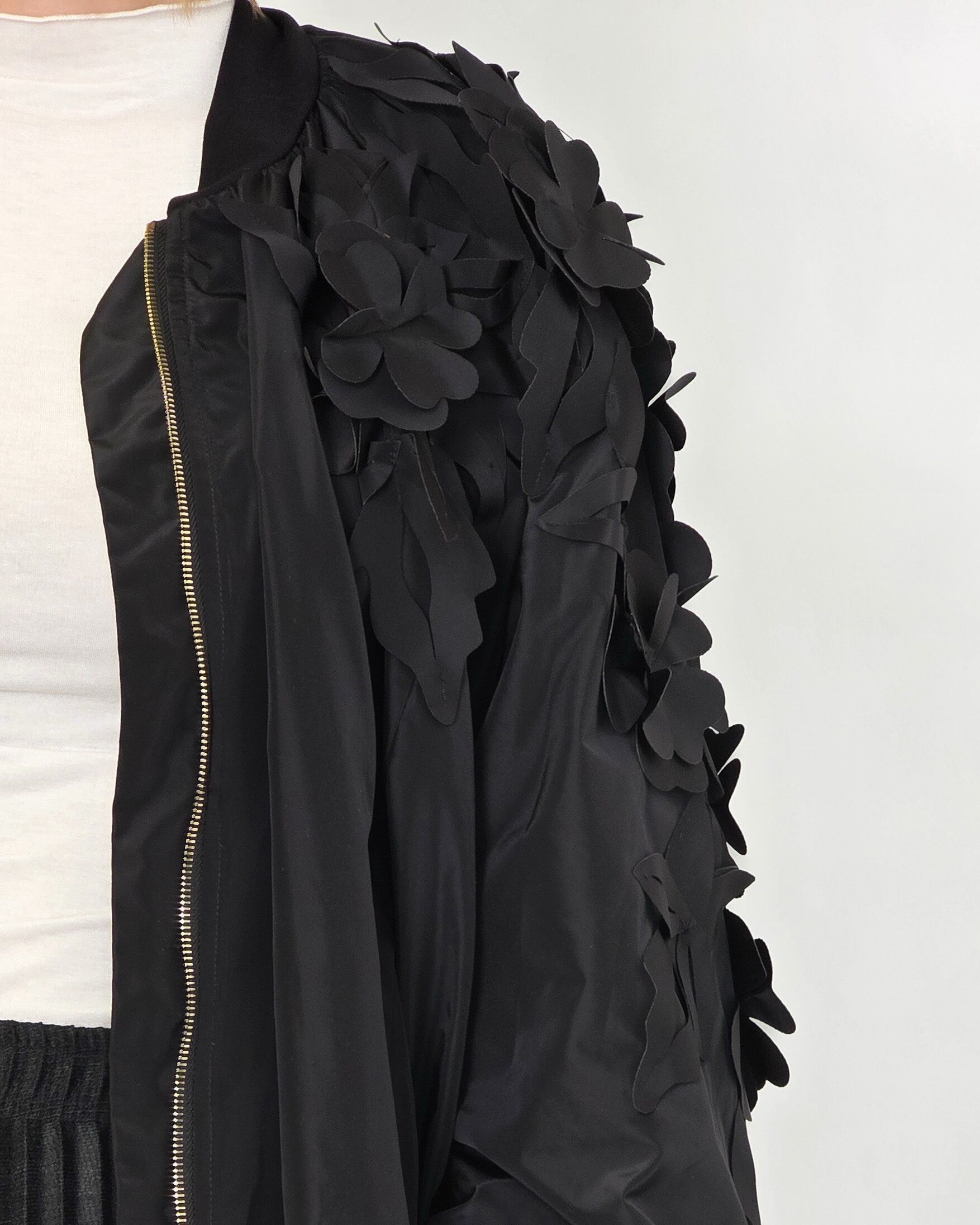✨ Wzbogać swoją garderobę o czarną bomberkę z kwiatowym akcentem – modny wybór, który nigdy nie wychodzi z trendów!
