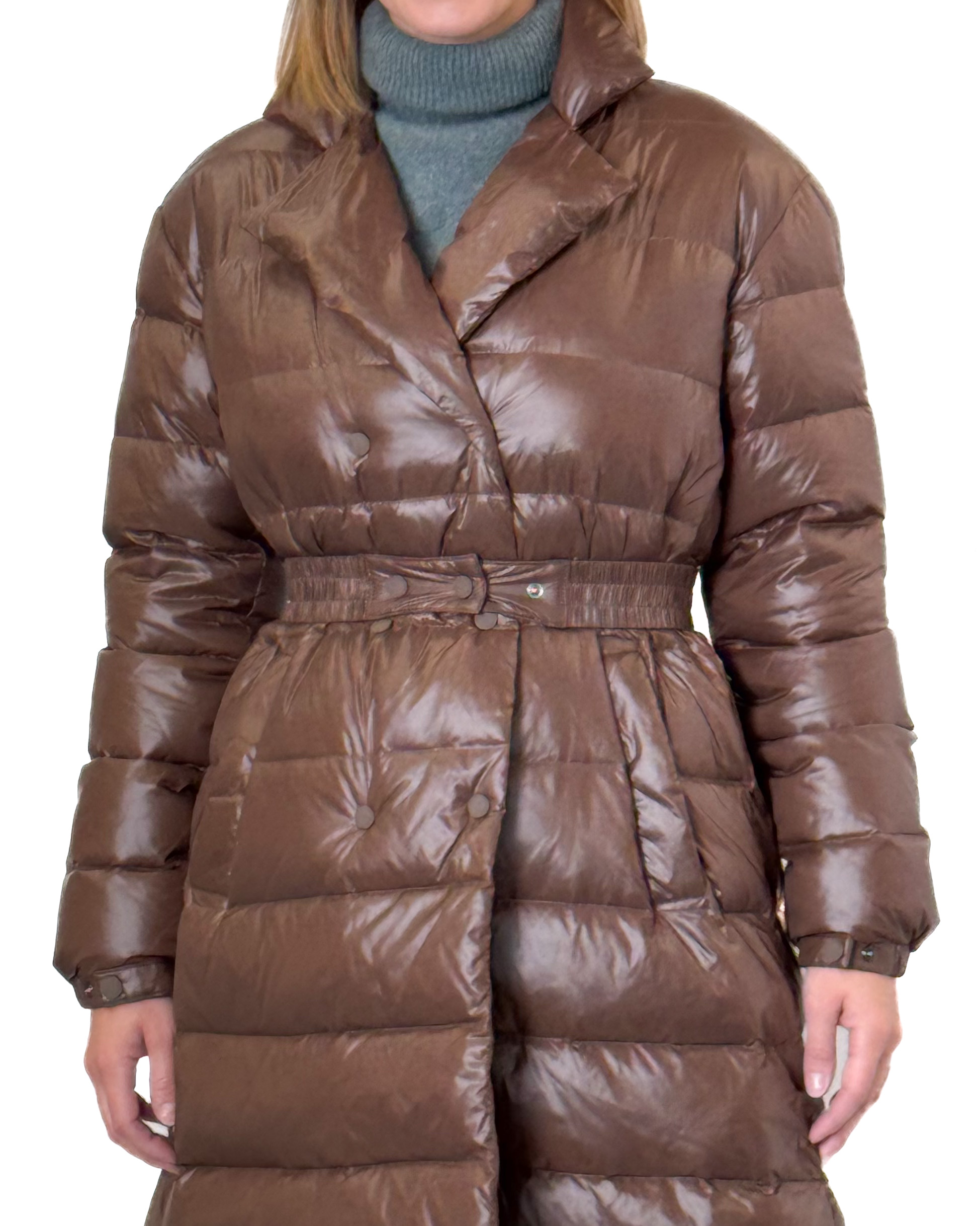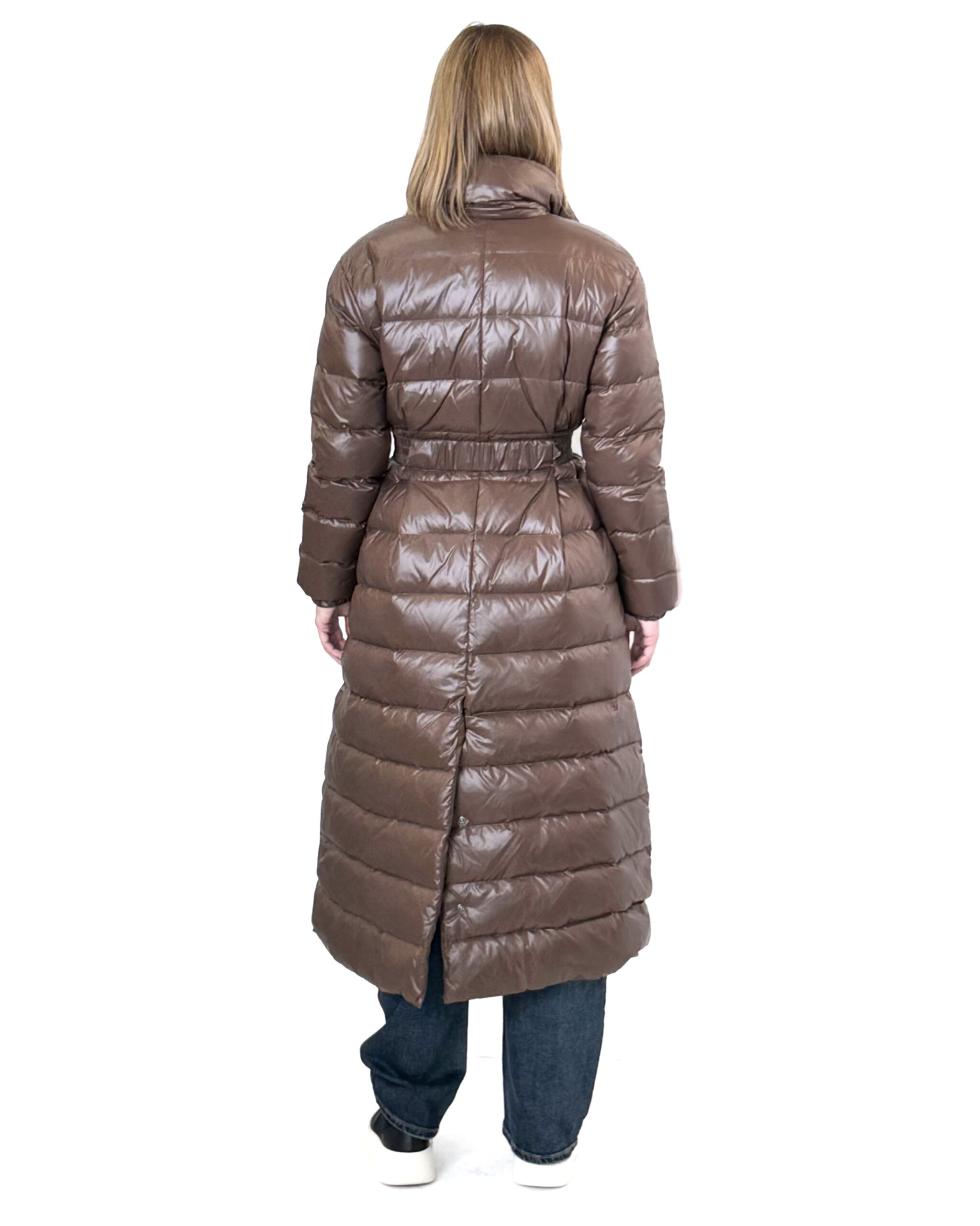 CZEKOLADOWA DŁUGA PIKOWANA KURTKA SKILLS W263ELA