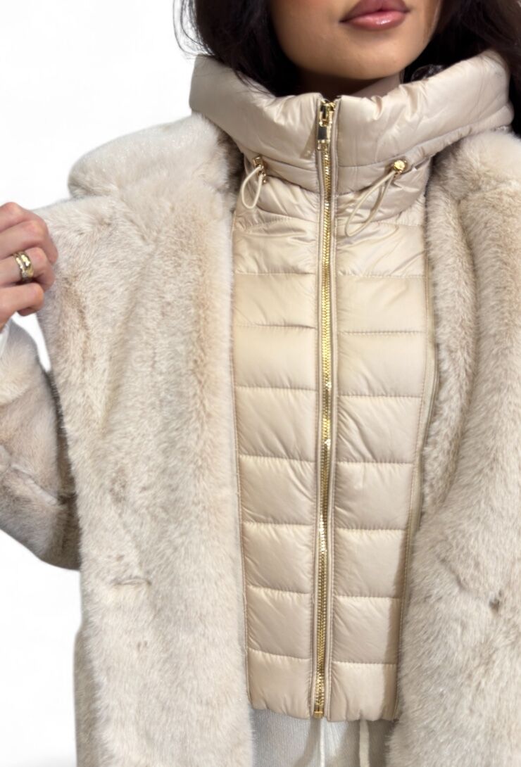 Kremowa kurtka futerko z kamizelką Artigli ACEC002961