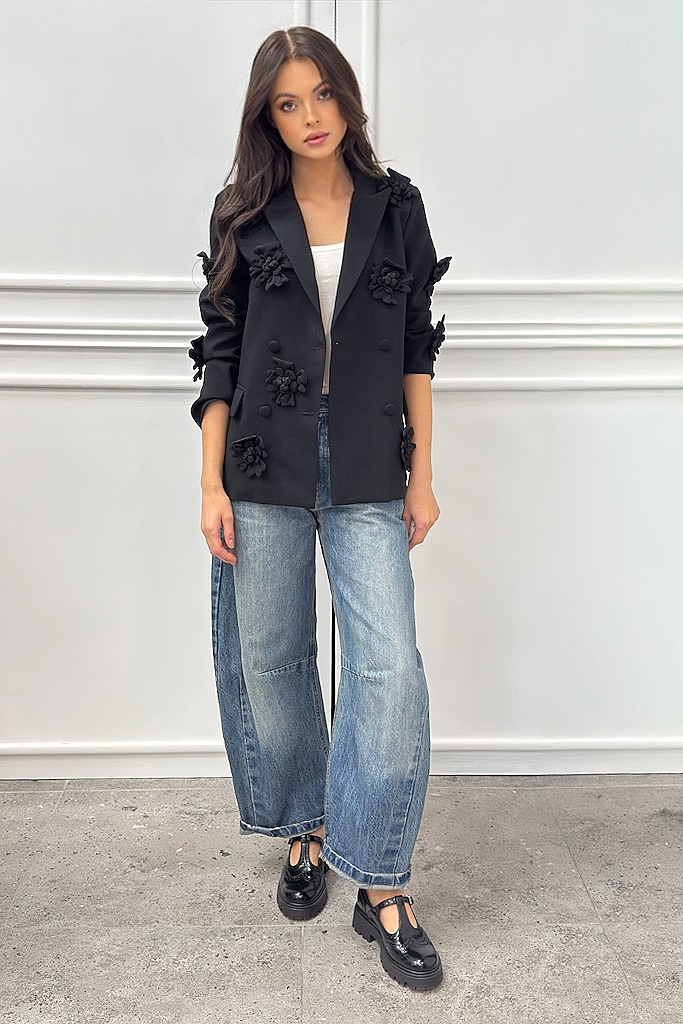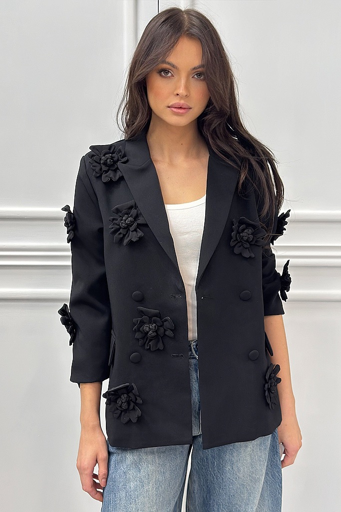 *** Postaw na czarną marynarkę z ozdobnymi kwiatami i wyróżnij się subtelną elegancją! Zamów już dziś!