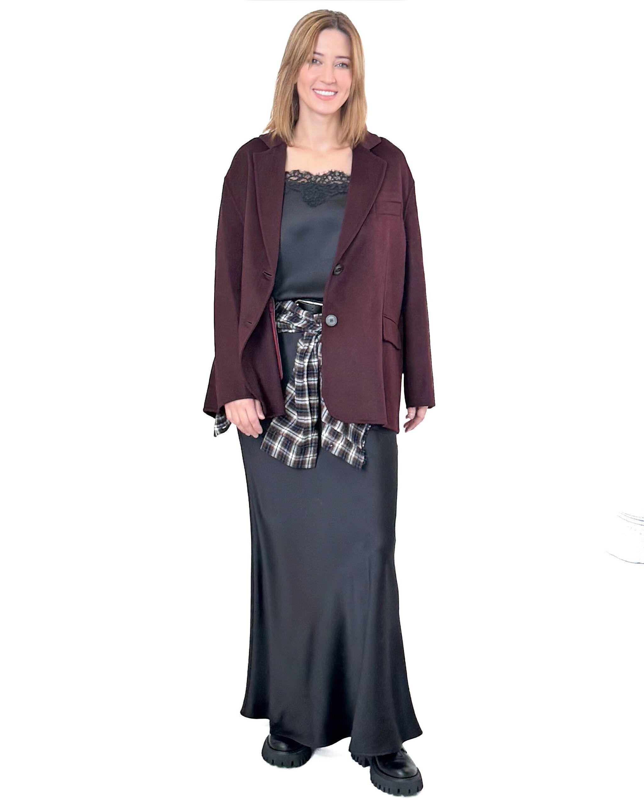 Ten bordowy płaszcz to doskonała baza do tworzenia różnorodnych stylizacji. Świetnie wygląda w połączeniu z klasycznymi jeansami i botkami na co dzień. W zestawieniu z elegancką sukienką i kozakami na obcasie zyskuje wyjątkowy i szykowny charakter. Możesz nosić go zarówno do biura, jak i na spotkania towarzyskie czy specjalne okazje. Uniwersalny kolor w odcieniu burgundu pięknie komponuje się z czernią, beżem, szarością i z modnymi w tym sezonie akcesoriami w kolorze złota i karmelu. Postaw na ponadczasowy design i włoską jakość. Wybierając płaszcz Vicolo, inwestujesz w styl, który nigdy nie wychodzi z mody. To must-have w garderobie każdej kobiety ceniącej elegancję i wygodę.