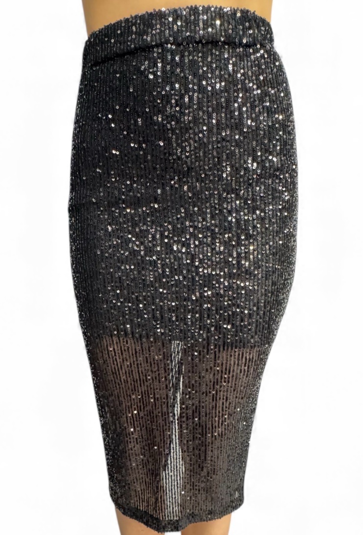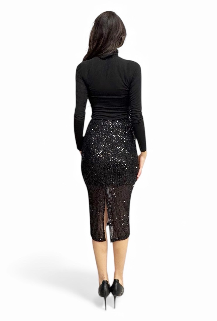Czarna ołówkowa spódnica midi z cekinów MR1065A