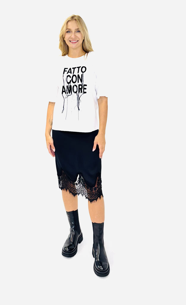 SPÓDNICA CZARNA SATYNOWA Z KORONKĄ MARYLEY 24IB70L