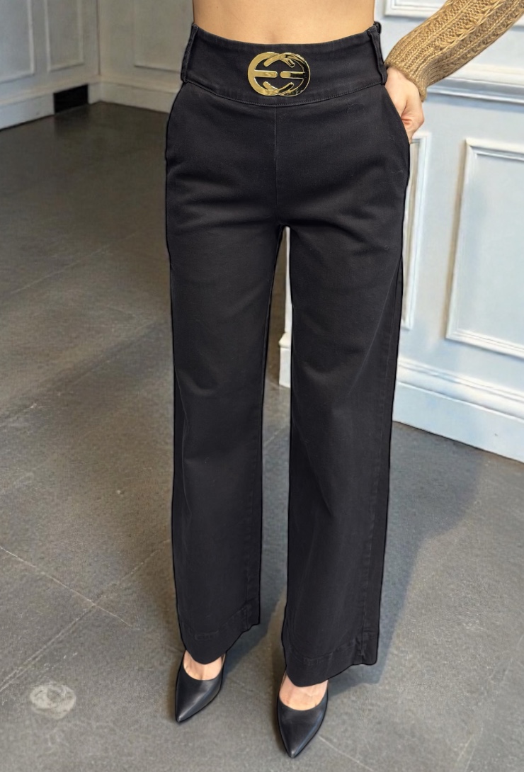 *** Podkreśl swój styl z czarnymi jeansami Babylon! Wysoki stan, szeroka nogawka i złota ozdobna blaszka sprawią, że każda stylizacja nabierze charakteru. ✨ Zamów teraz i poczuj komfort w eleganckim wydaniu! ***