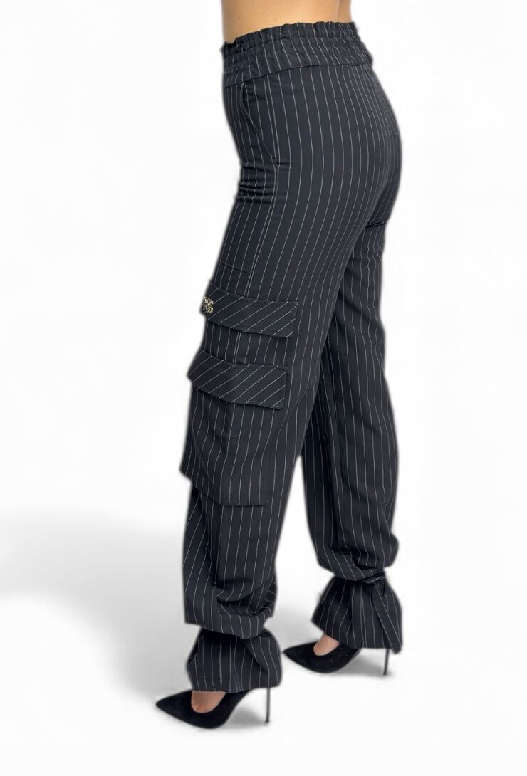 Czarne spodnie cargo w prążek Revise GessatoCzarne spodnie cargo w prążek Revise Gessato