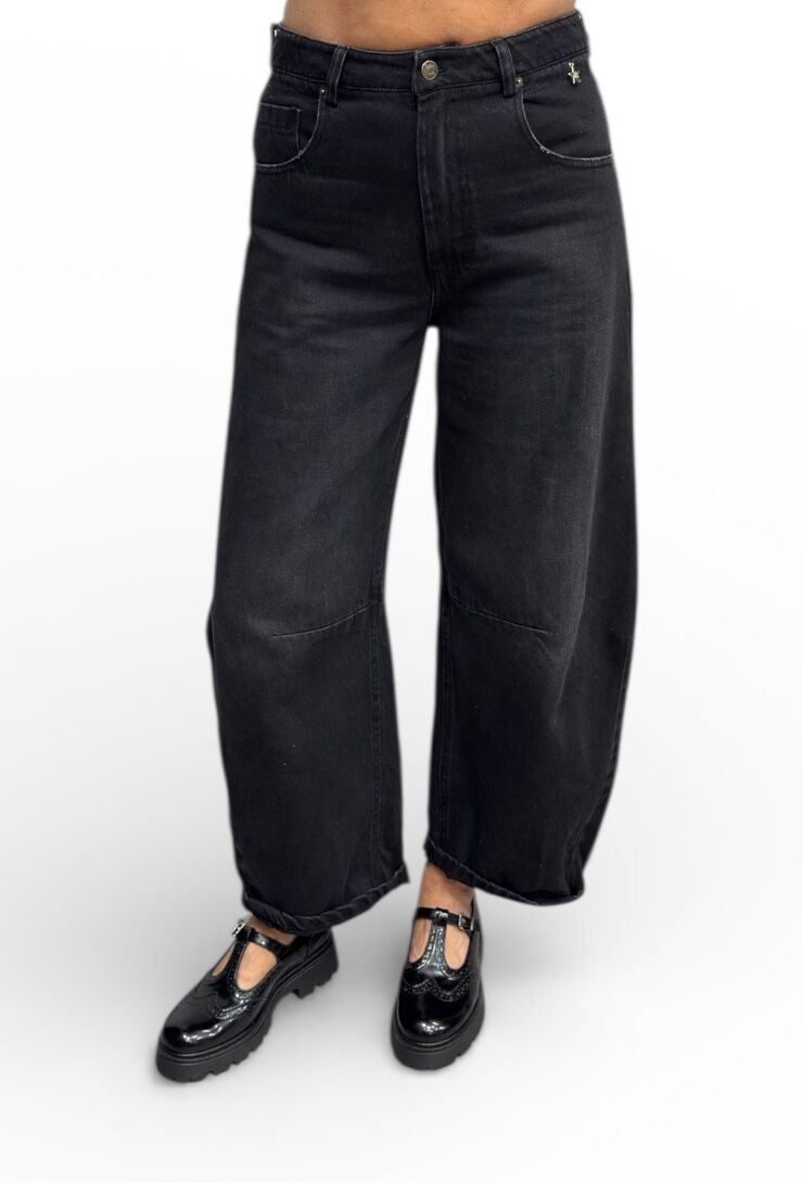 Czarne spodnie gładkie szerokie jeansy Souvenir M38F1523