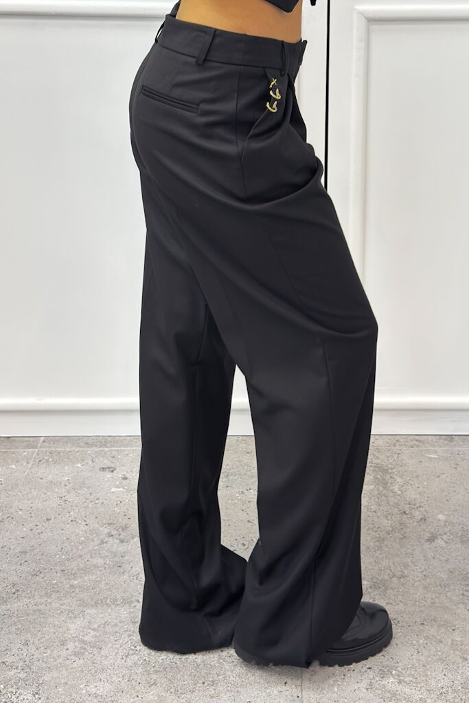 Eleganckie czarne spodnie z materiału o luźnym kroju od włoskiej marki Revise. Klasyczne, ponadczasowe, idealna różne okazje. Zamów i sprawdź!