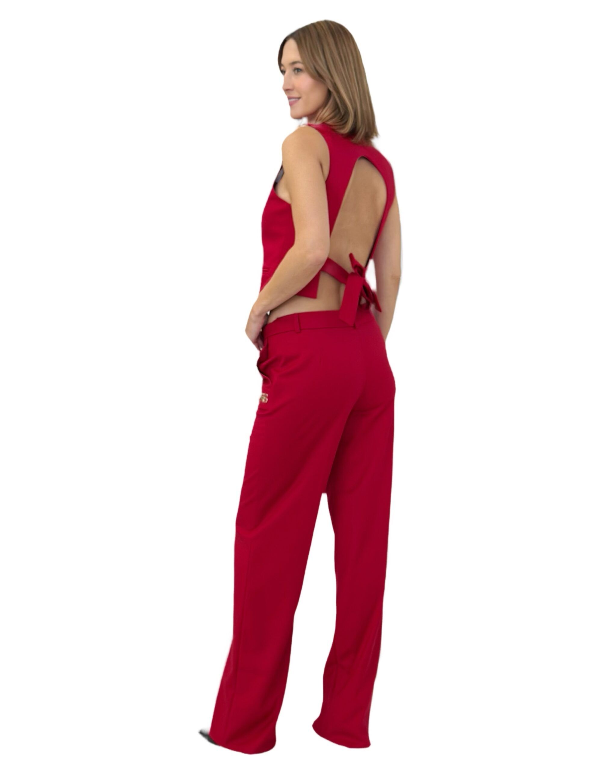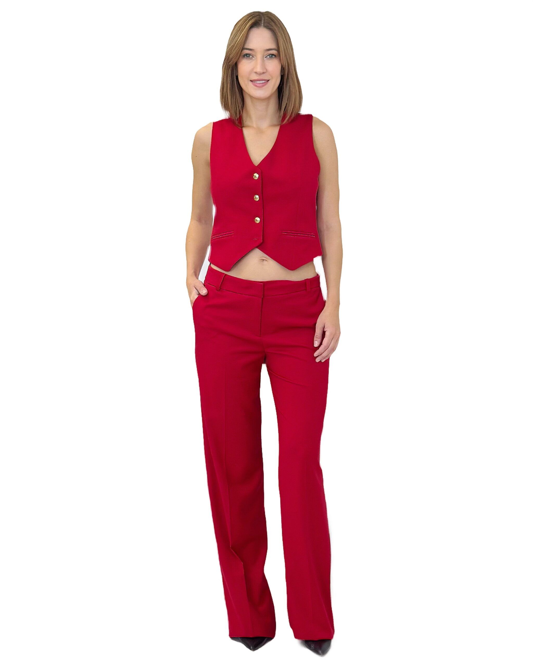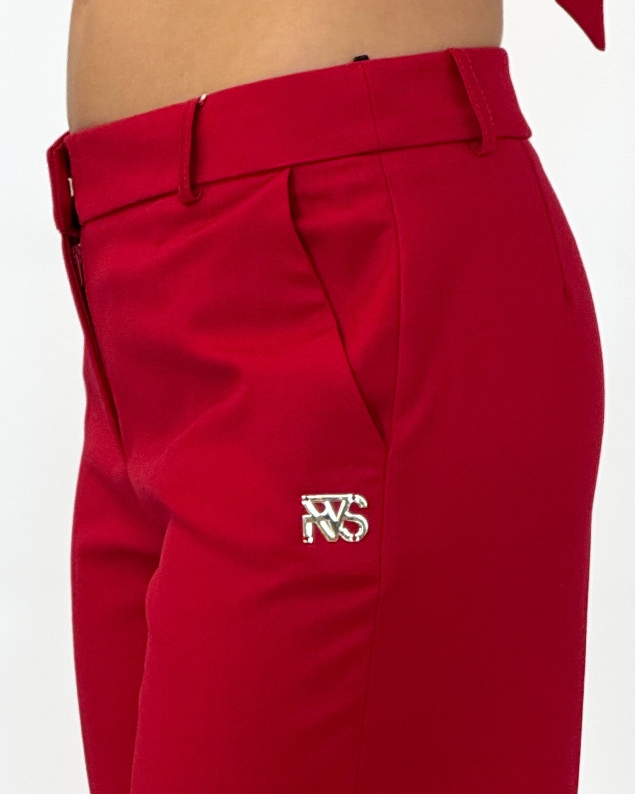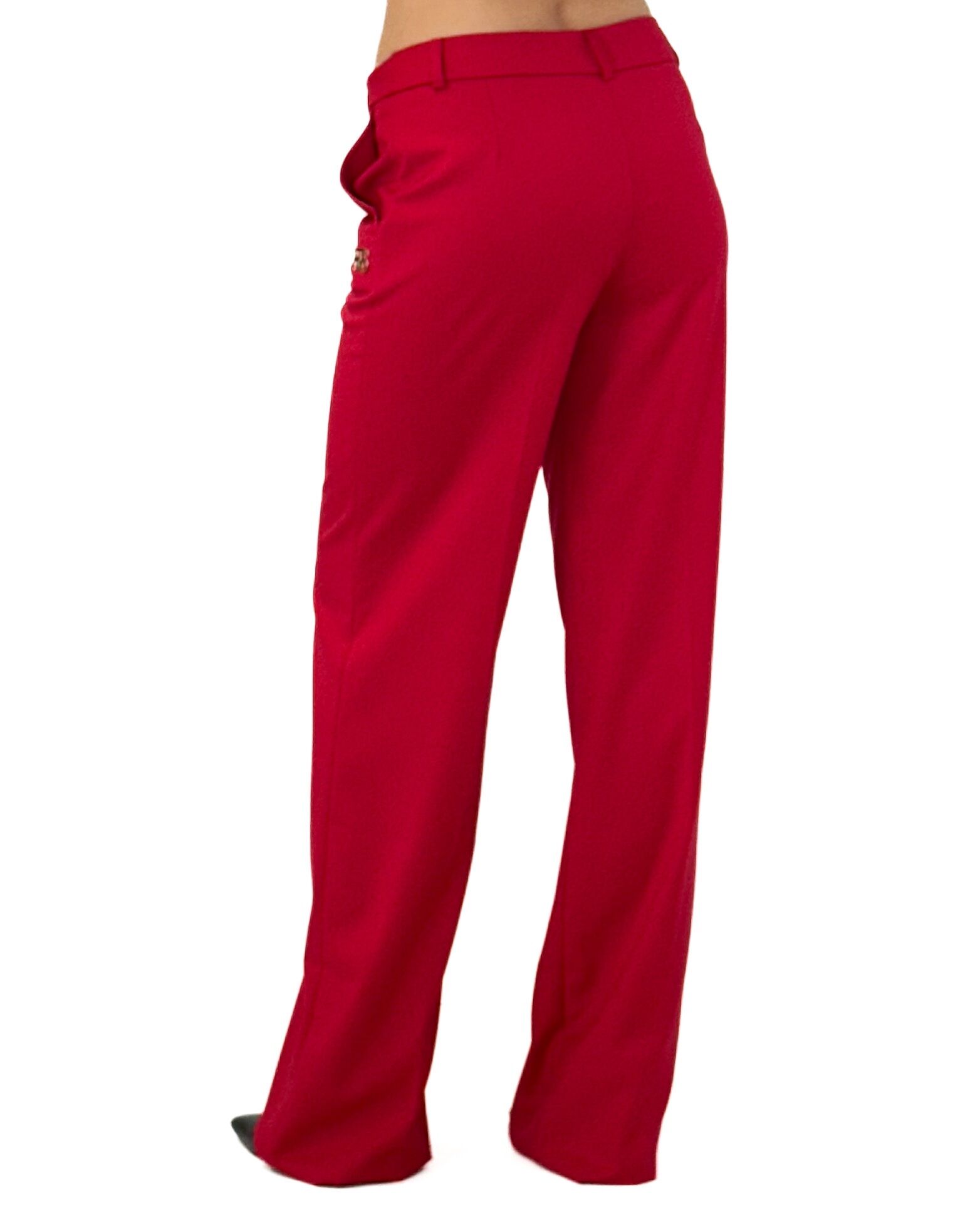 SPODNIE CZERWONE Z MATERIAŁU Z SZEROKĄ NOGAWKĄ REVISE OLIVIA