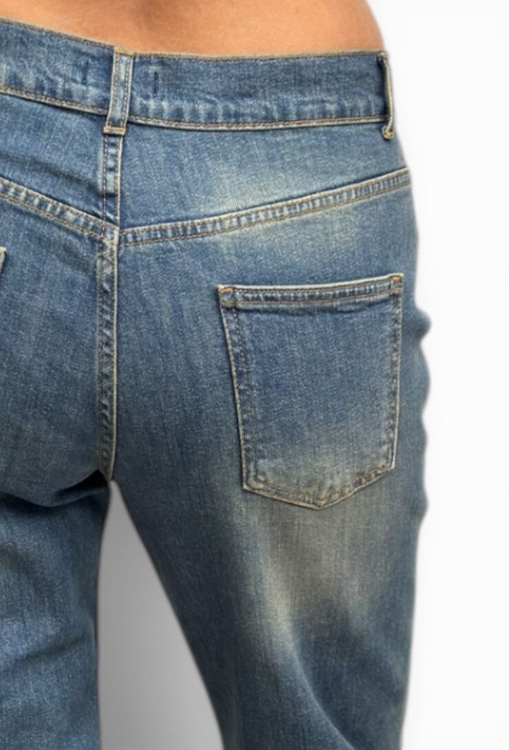 Opis: Delikatne przetarcia koloru, prosta klasyczna nogawka