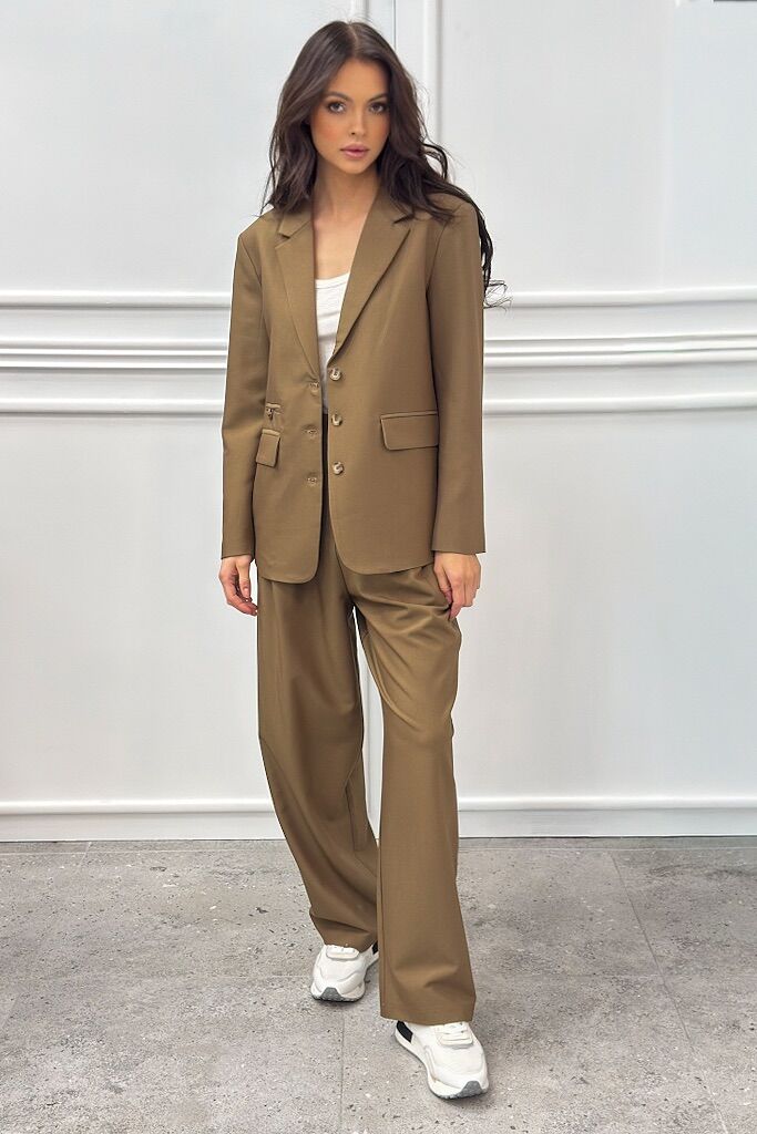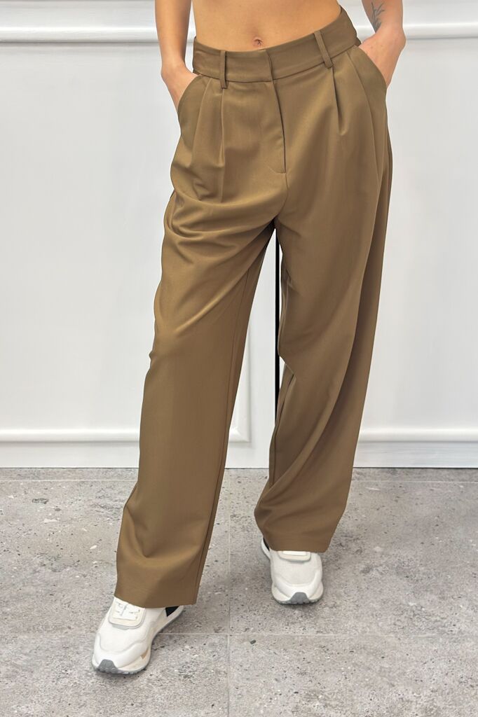 Model doskonale komponuje się z koszulą, marynarką lub dopasowanym topem, tworząc stylowy i uniwersalny zestaw. Neutralny beżowy kolor ułatwia łączenie z innymi elementami garderoby oraz dodatkami. Idealne dla kobiet ceniących klasykę, minimalizm i elegancję w nowoczesnym wydaniu.