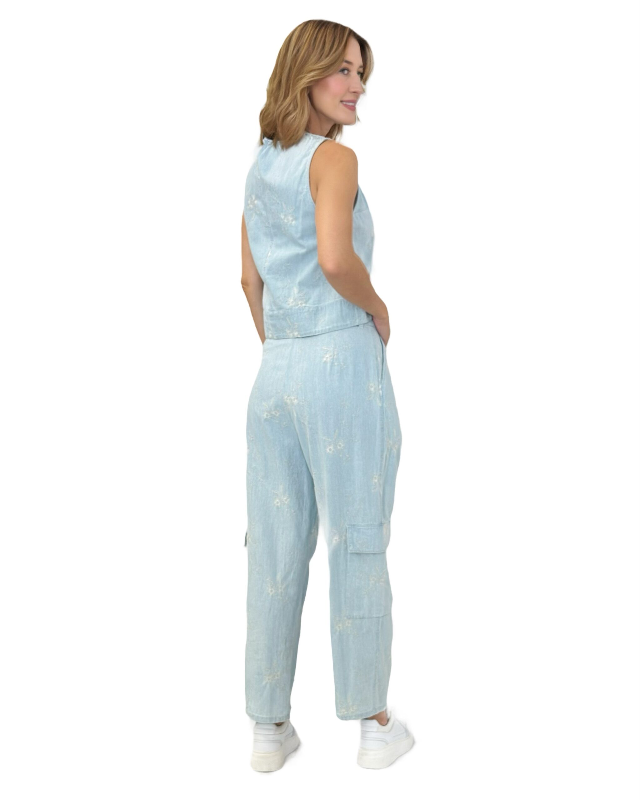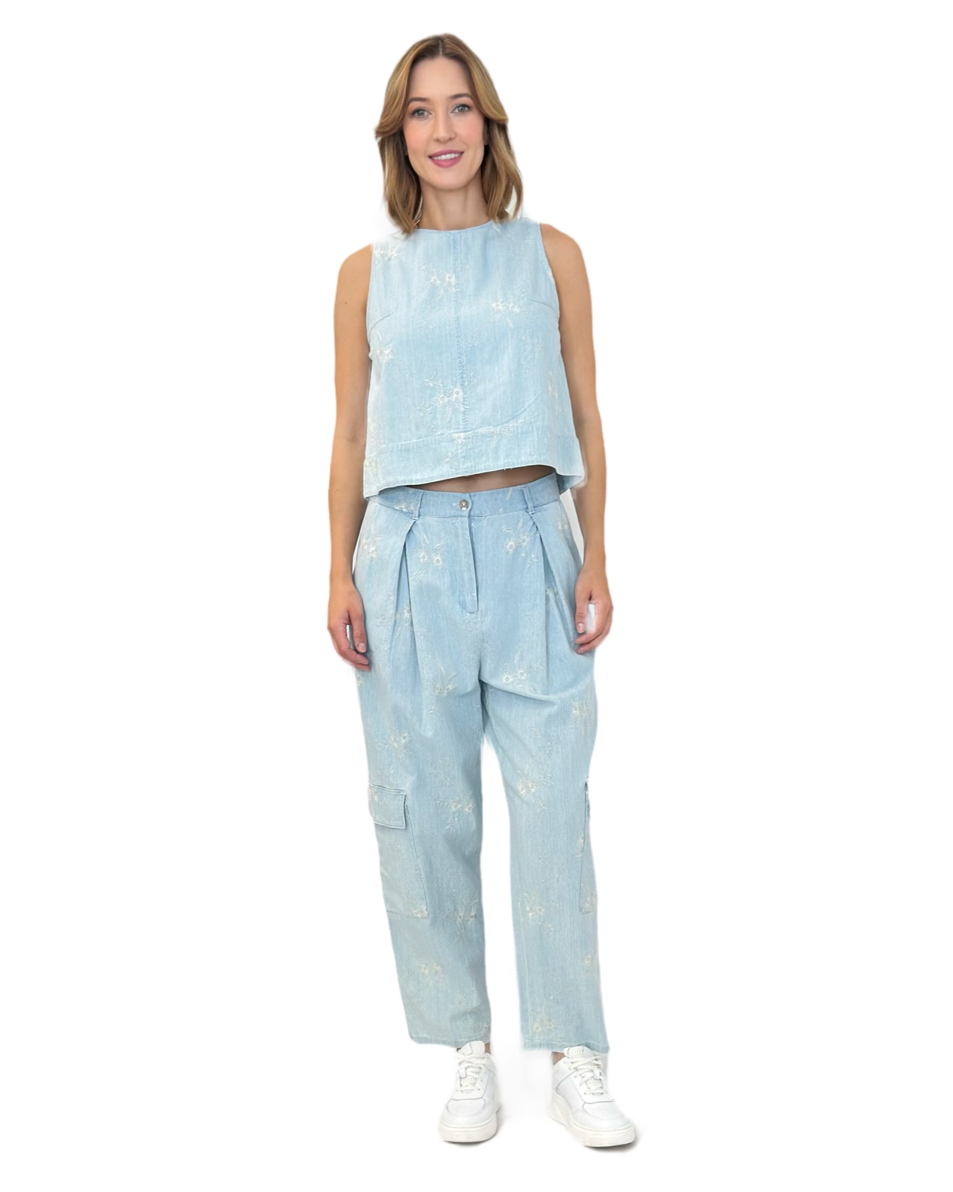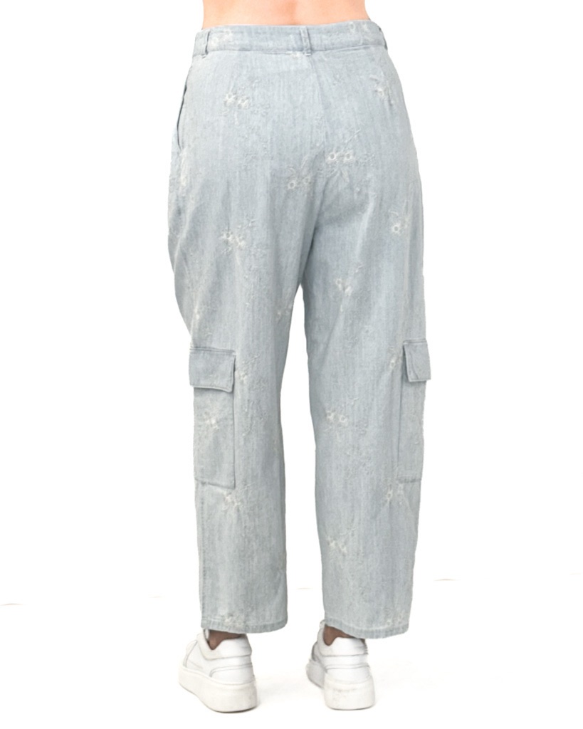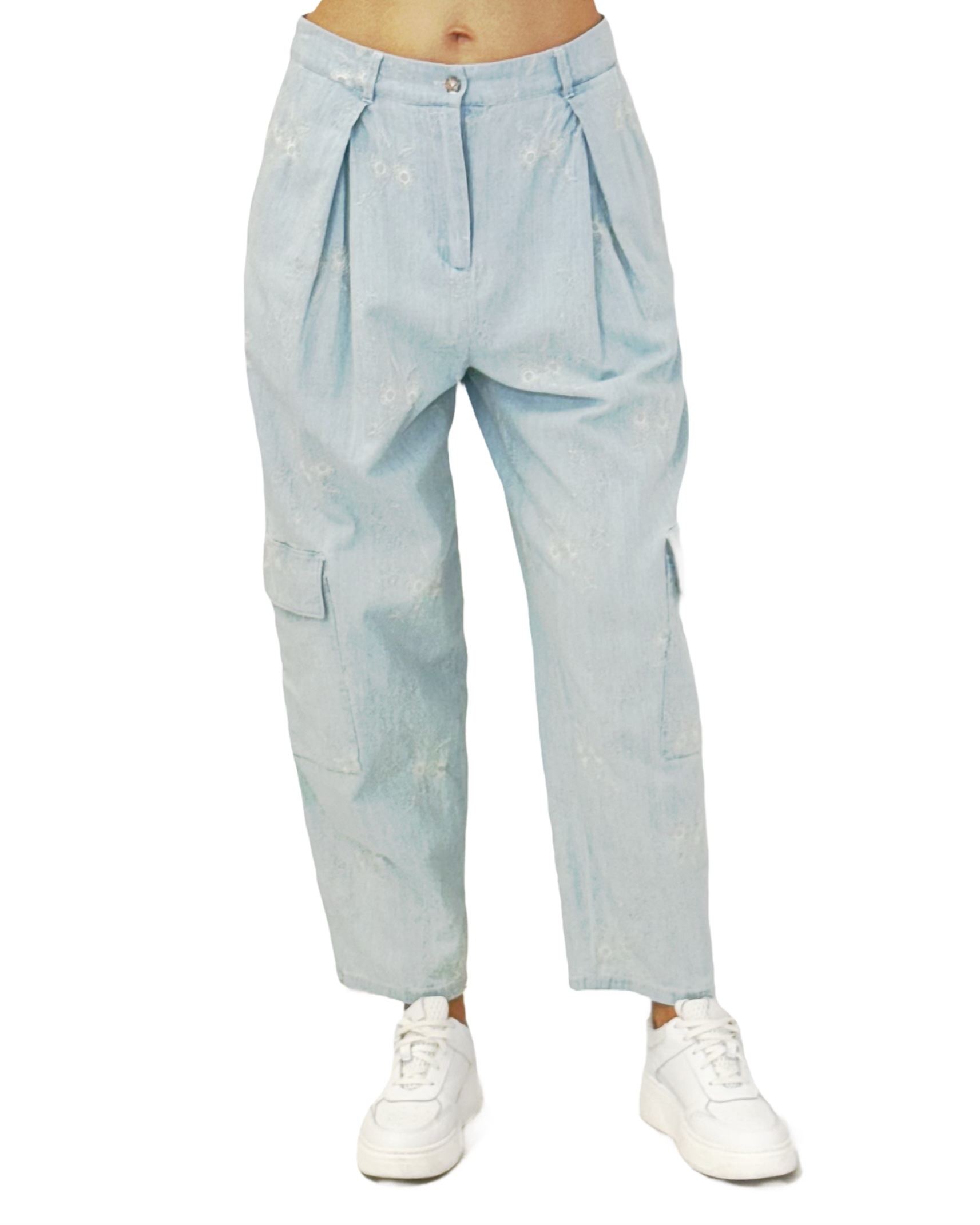 SPODNIE BŁĘKITNE BOJÓWKI W HAFTOWANE KWIATKI PIA B PABITIA
