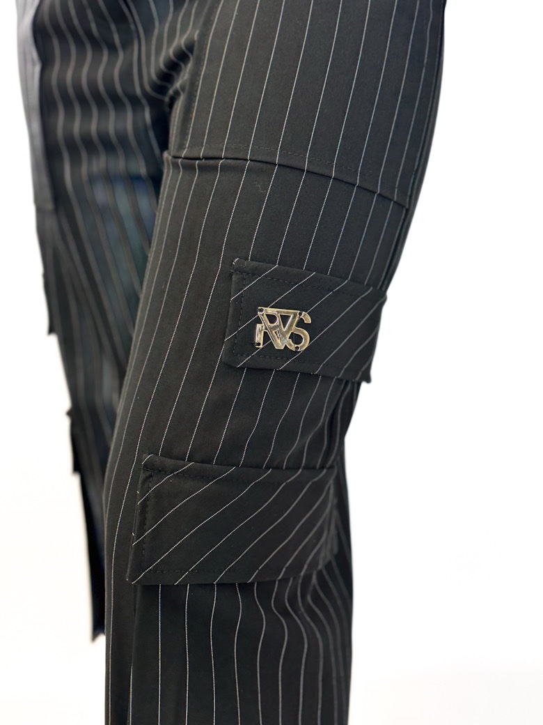 SPODNIE CZARNE Z MATERIAŁU W PRĄŻEK REVISE CHRISTINE