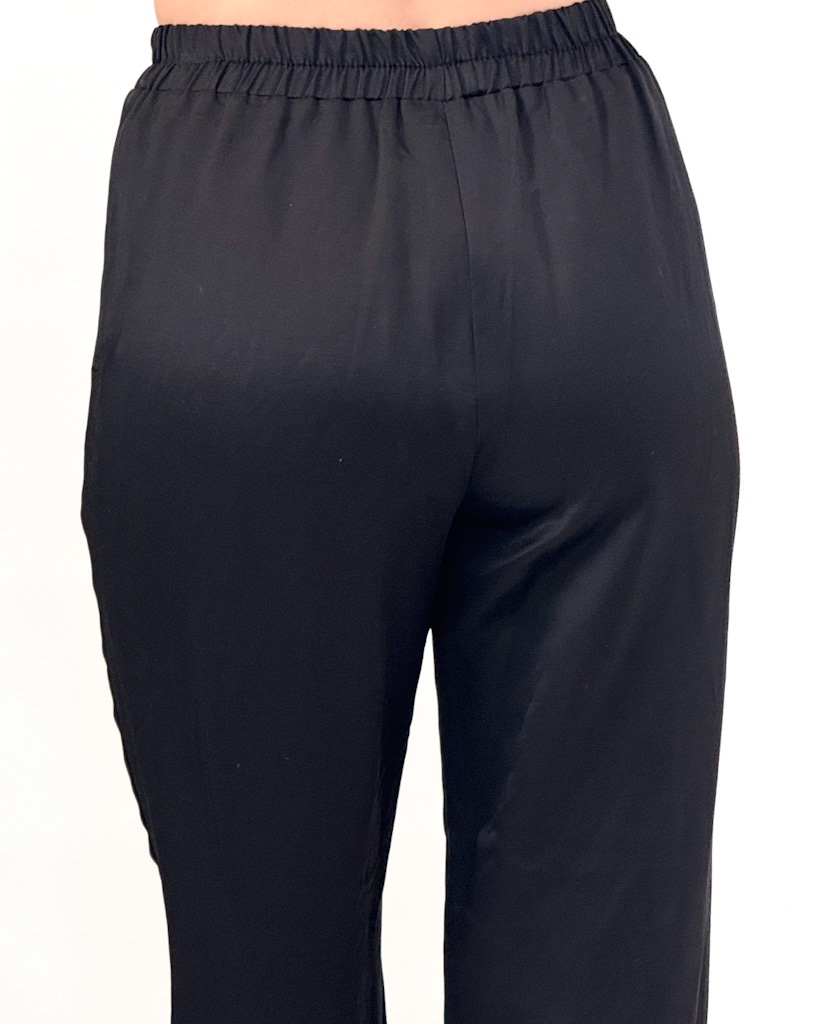 SPODNIE CZARNE LUŹNE Z WISKOZY I LNU PIA B PAVERSI