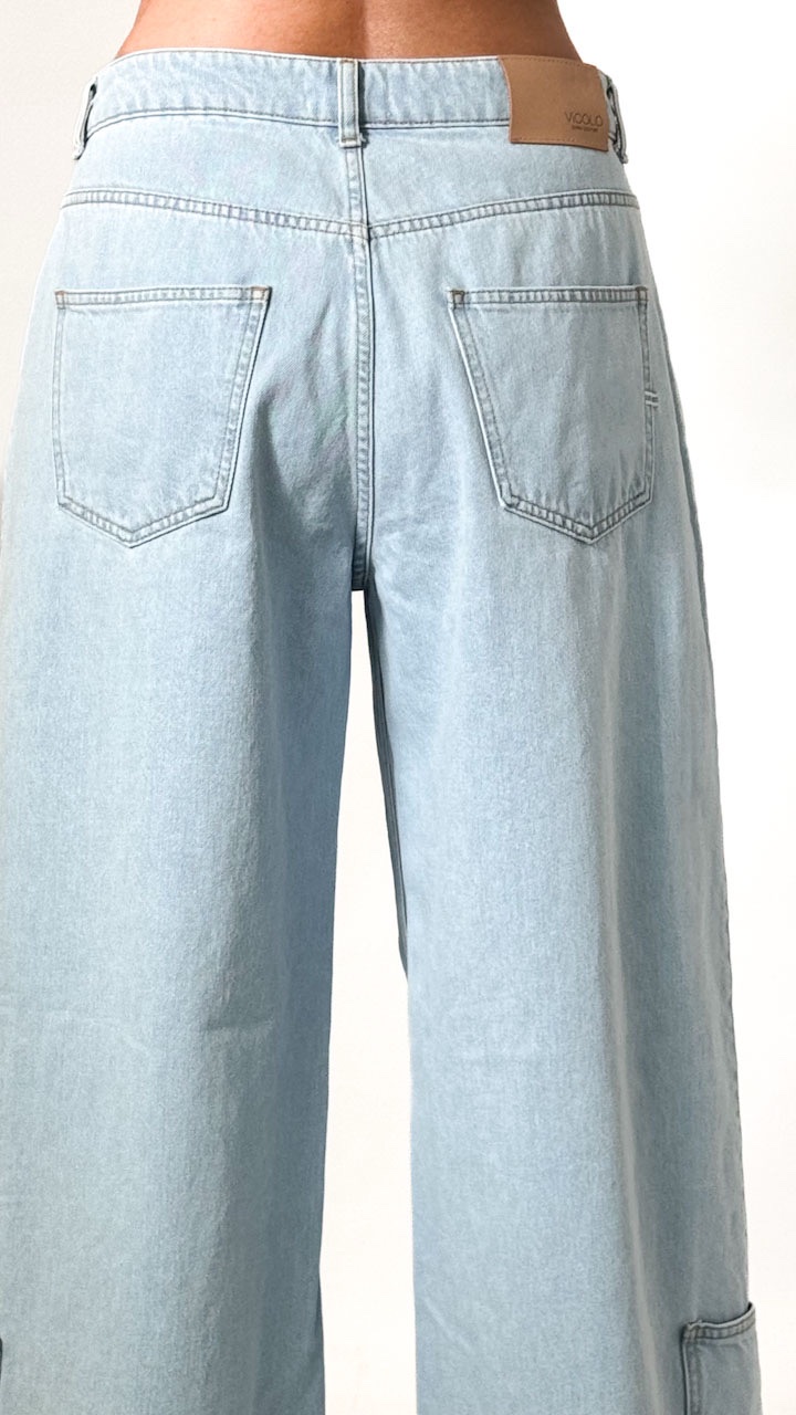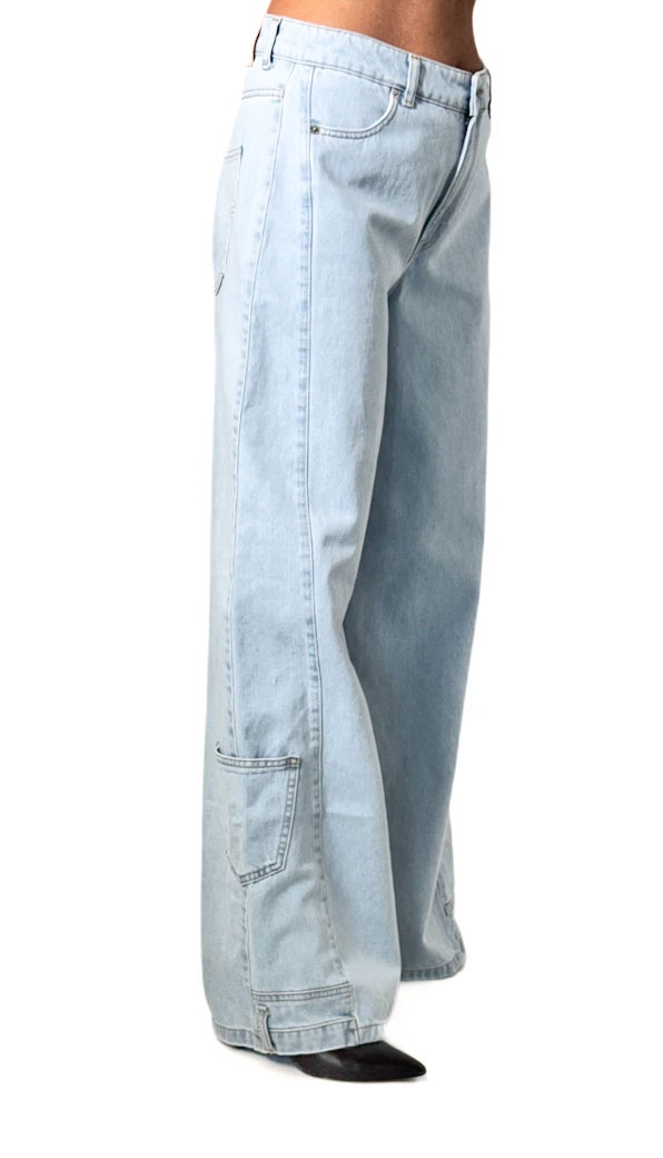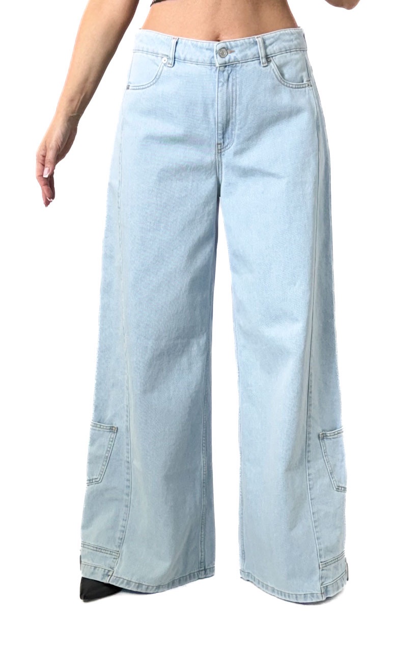 SPODNIE JASNE BŁĘKITNE JEANSY Z SZEROKĄ NOGAWKĄ DD5358 ELODIE