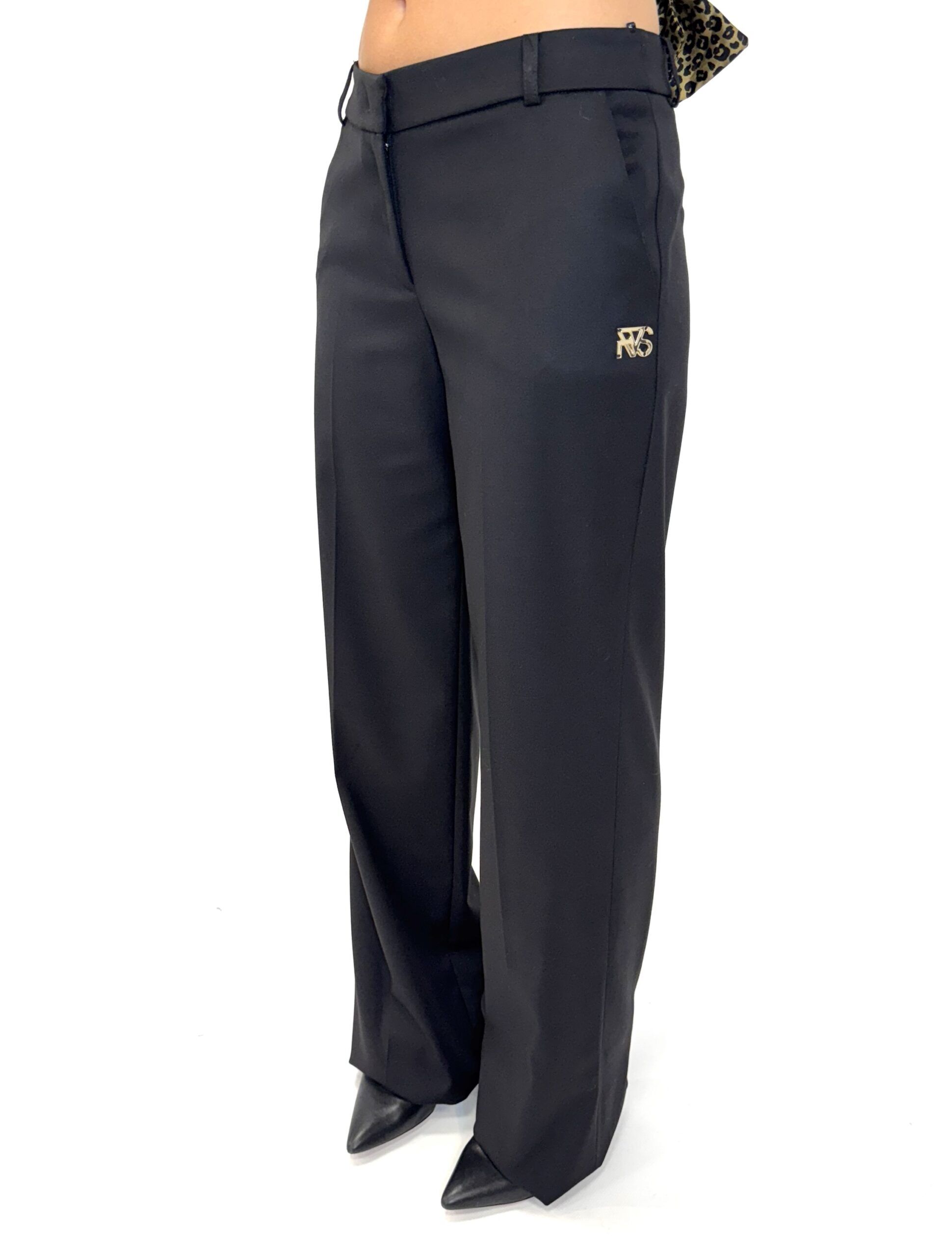SPODNIE CZARNE Z MATERIAŁU Z SZEROKĄ NOGAWKĄ REVISE OLIVIA