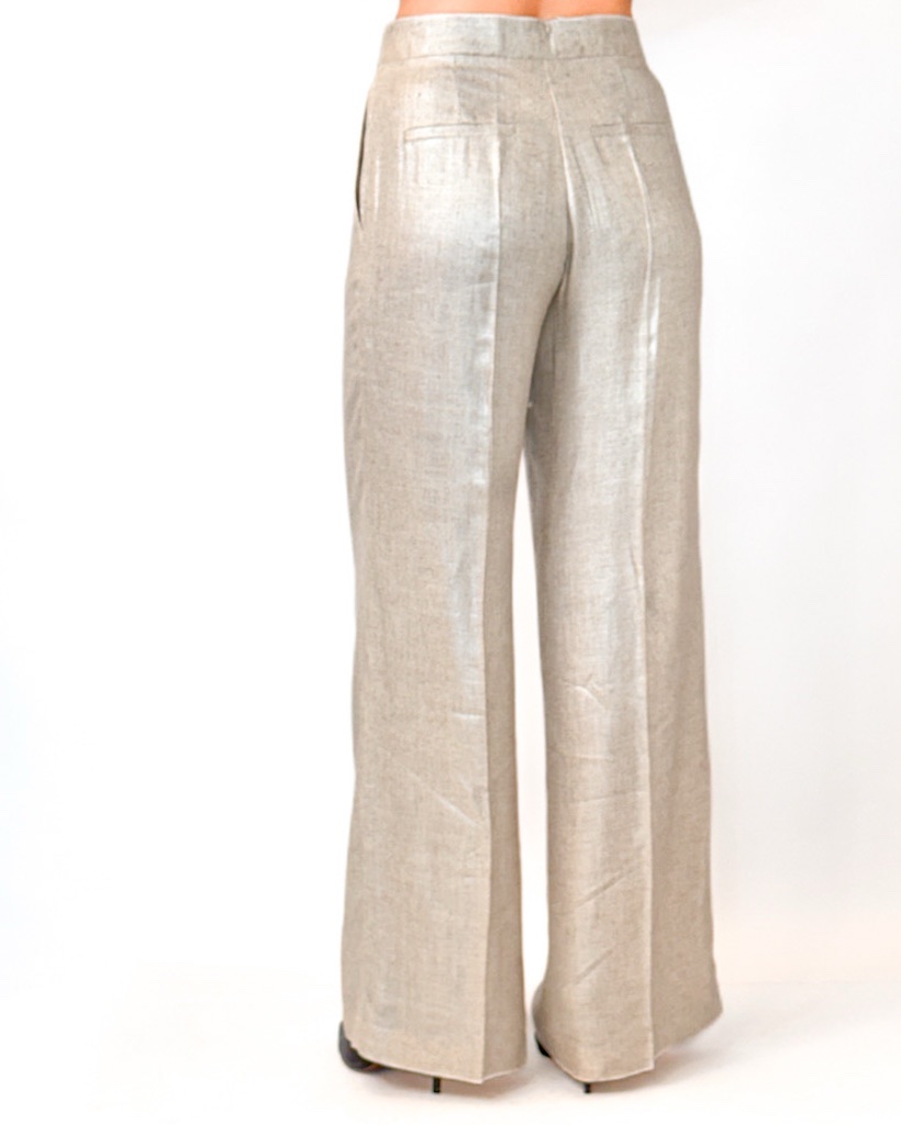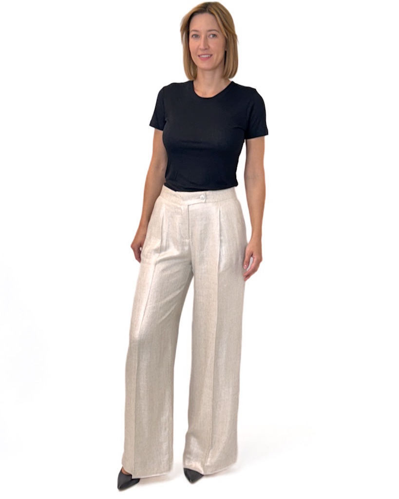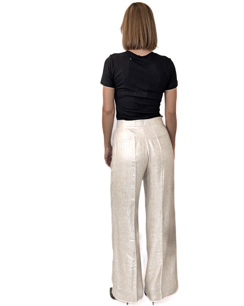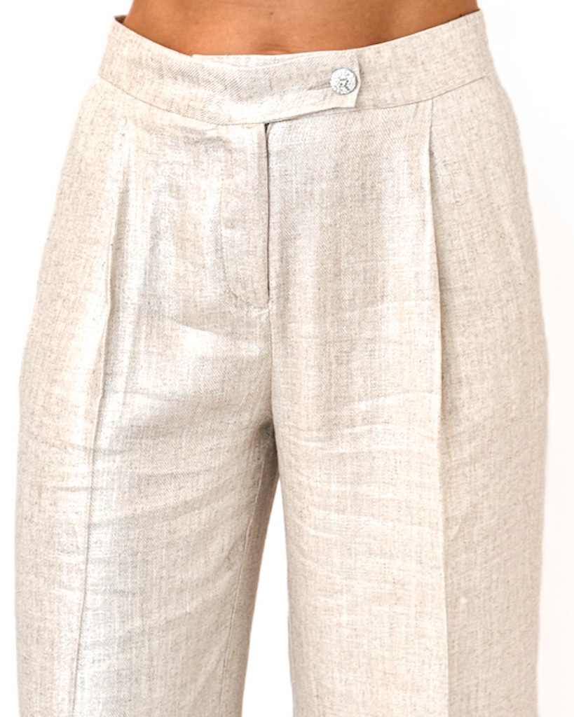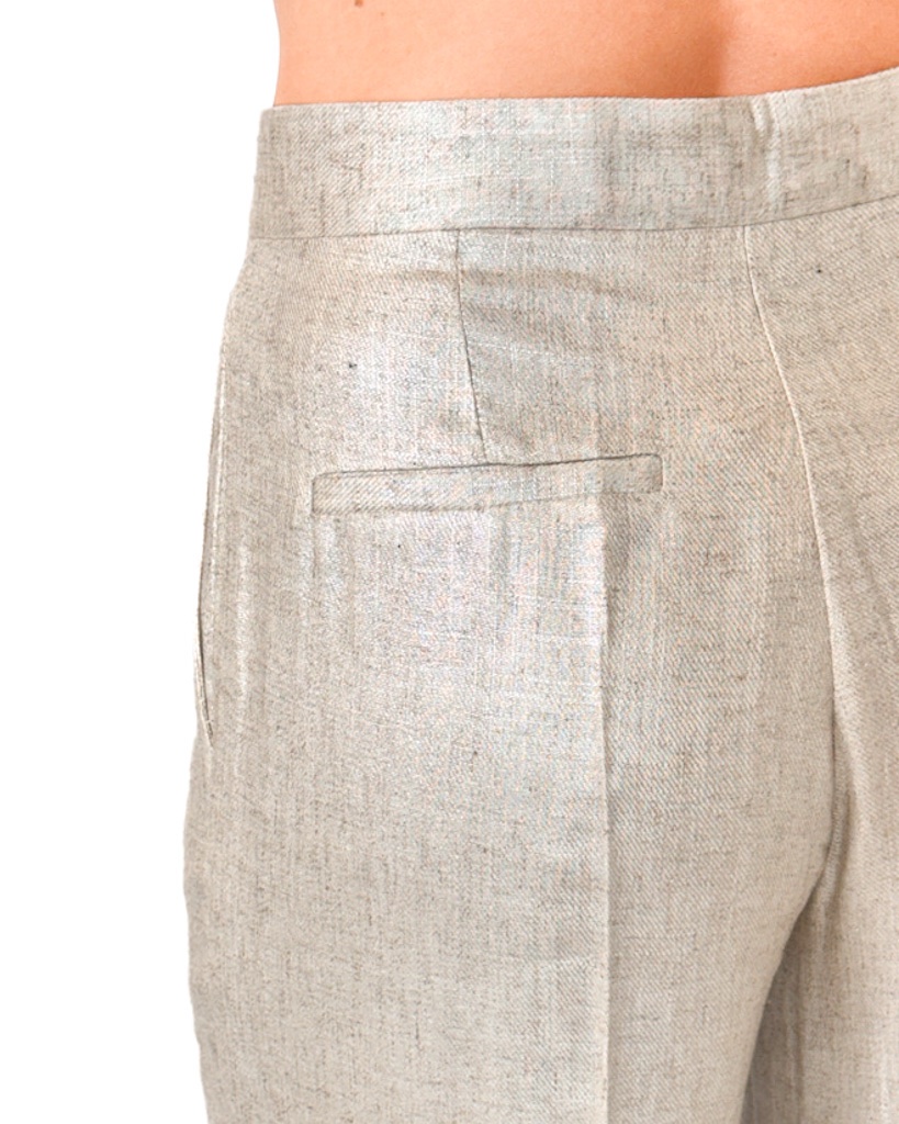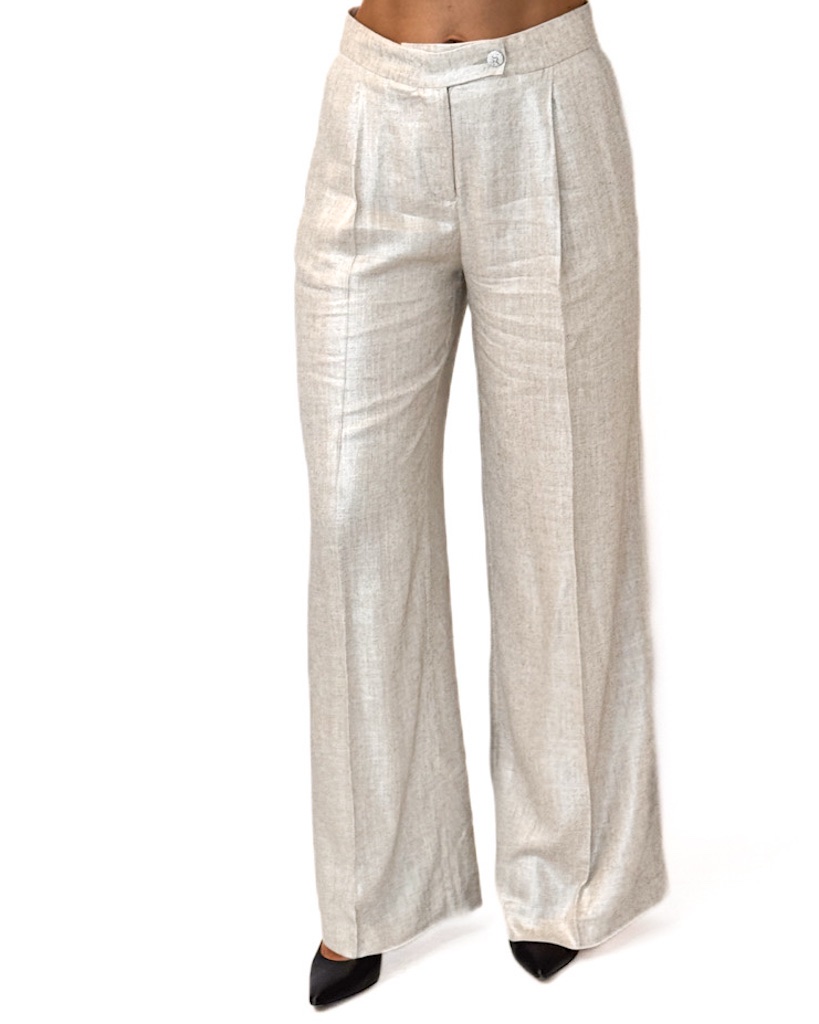 SPODNIE KREMOWE ZE SREBRNĄ NITKĄ SZEROKIE LEKKIE SILENCE SLPA272
