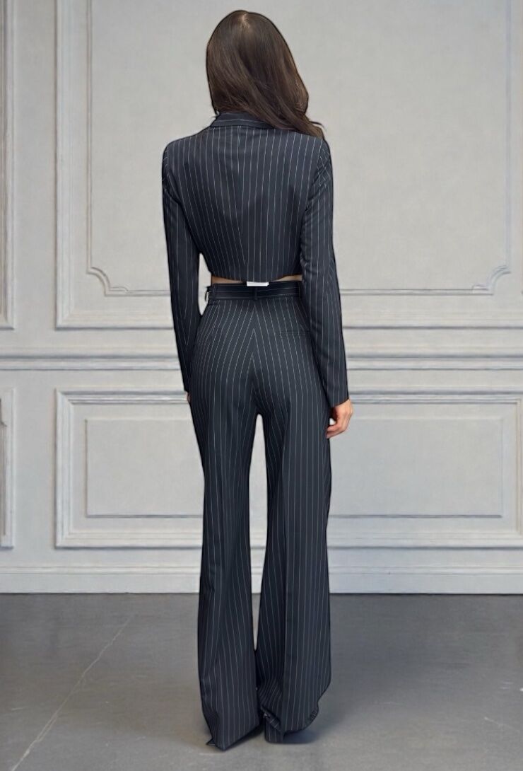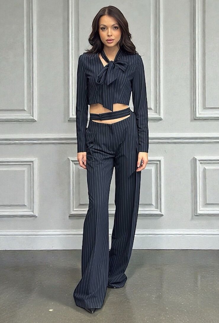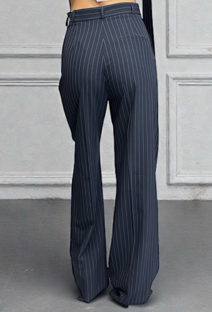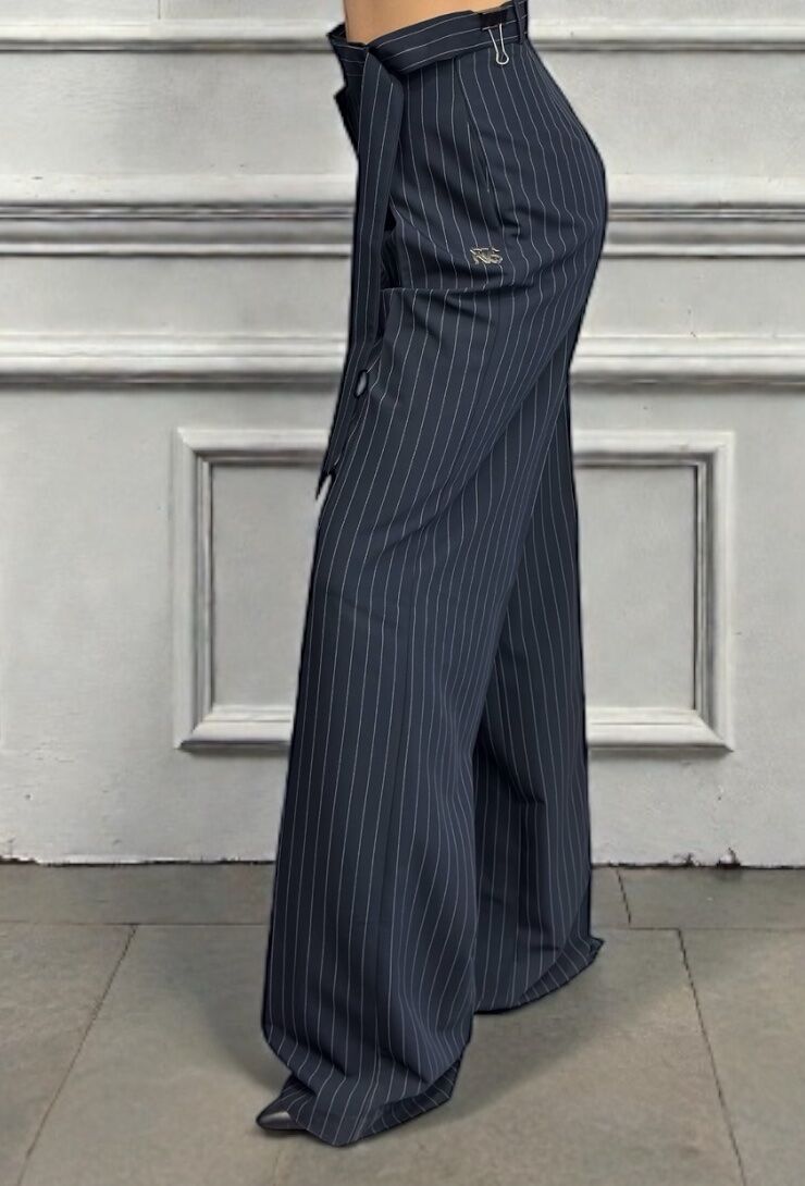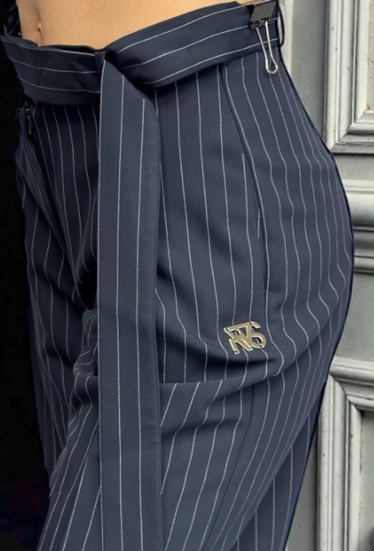 SPODNIE SZEROKIE GRANATOWE Z MATERIAŁU W PRĄŻEK REVISE STRIPES19