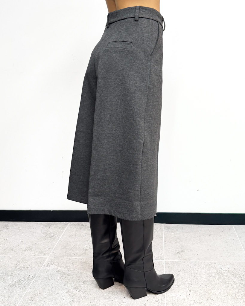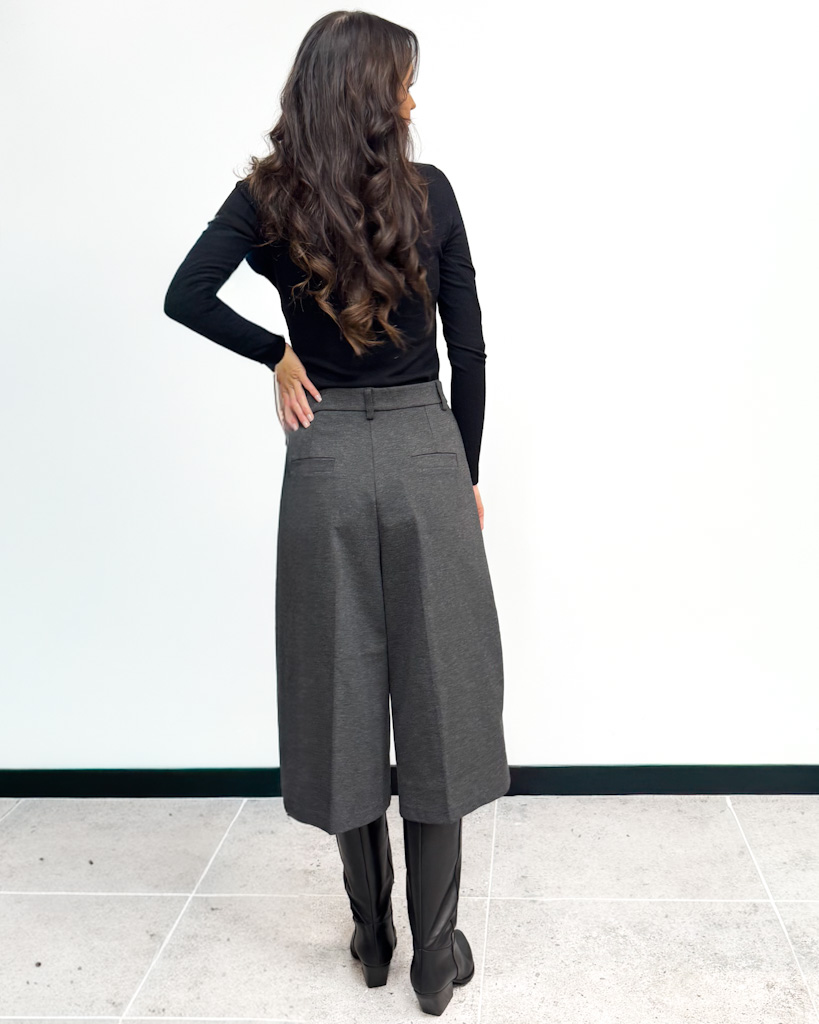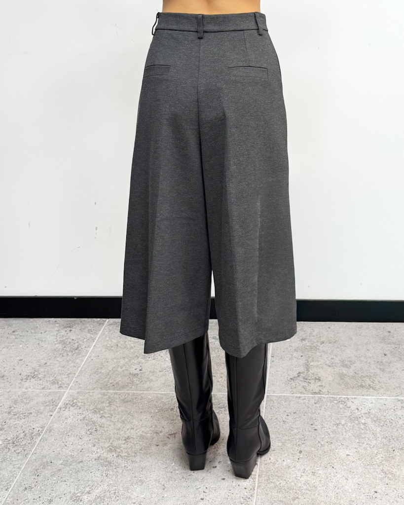 Eleganckie, szare spodnie kuloty z materiału – idealne na jesień i zimę. Stylowe, wygodne – doskonałe do pracy, biura i na codzień. Sprawdź sama!