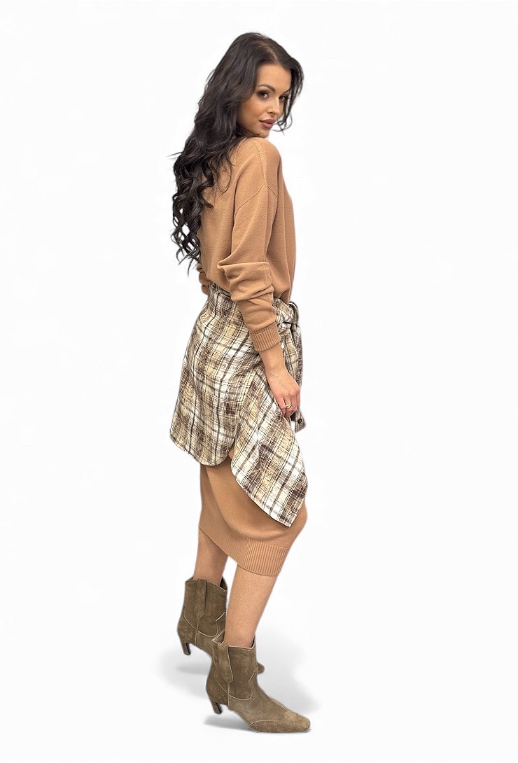 To model, który można nosić zarówno na co dzień, jak i na bardziej eleganckie okazje — wystarczy dobrać odpowiednie dodatki. Beżowa sukienka dzianinowa świetnie komponuje się z kozakami, botkami czy modnymi sneakersami. Idealna do pracy, na spotkania, zakupy czy jesienno-zimowe wyjścia. To podstawowy element kobiecej garderoby, zapewniający komfort, styl i nieprzemijającą elegancję.