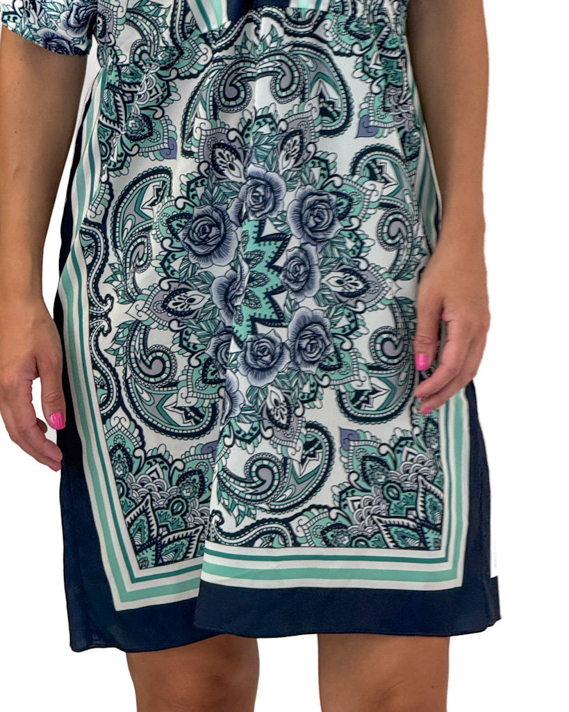 Letnia sukienka w kwiaty z dekoltem w szpic i subtelną niebieską koronką to idealna propozycja na ciepłe, słoneczne dni. Kwiatowy wzór wprowadza romantyczny, świeży akcent, który pięknie podkreśla kobiecy styl. Lekka, przewiewna tkanina sprawia, że sukienka świetnie układa się na sylwetce i gwarantuje pełen komfort noszenia nawet w upalne dni. Dekolt w szpic subtelnie wydłuża szyję i dodaje sylwetce lekkości, a delikatna koronka nadaje całości wyjątkowego uroku.