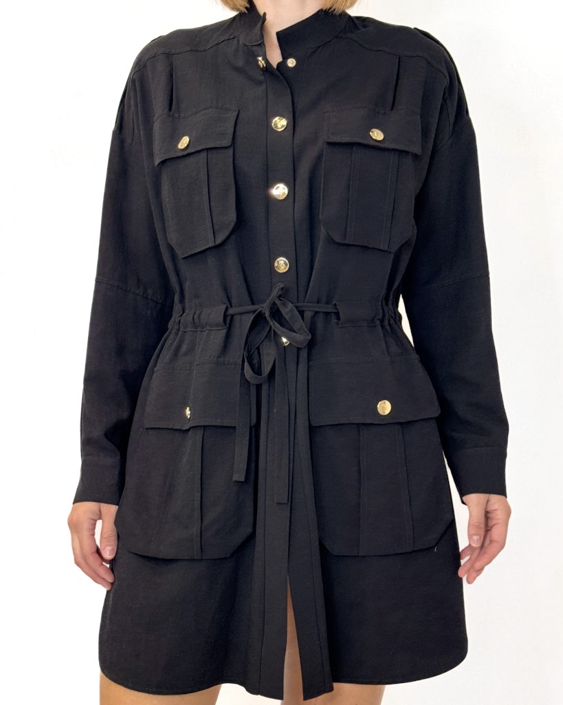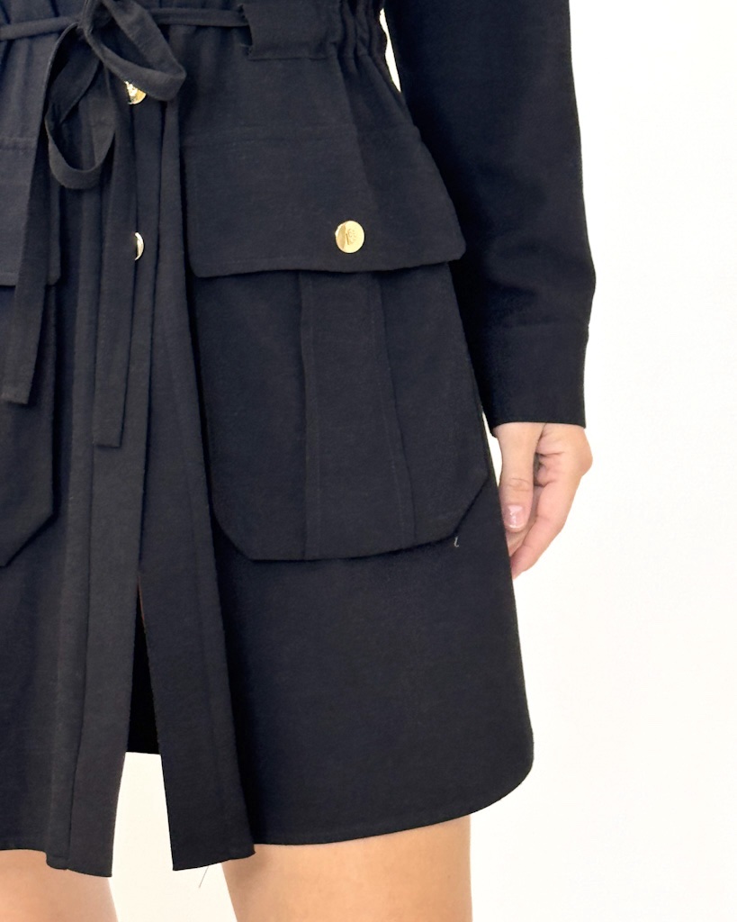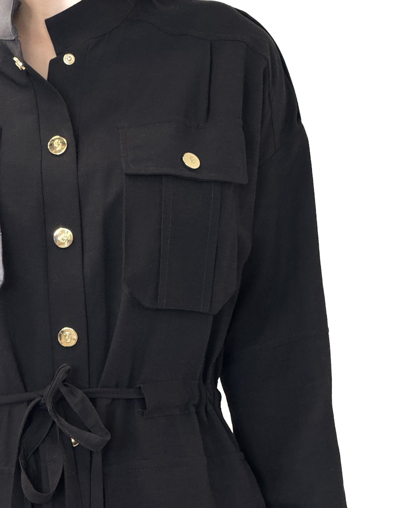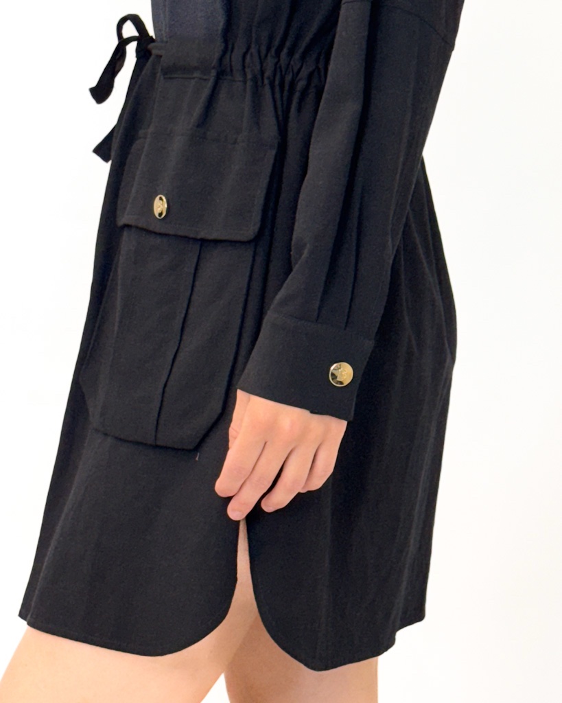 SUKIENKA CZARNA KOSZULOWA Z WISKOZY I LNU BABYLON UMF0409