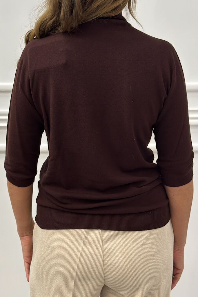 Brązowy sweter z golfem i rękawem do łokcia Kontatto 3M0823CNBrązowy sweter z golfem i rękawem do łokcia Kontatto 3M0823CN