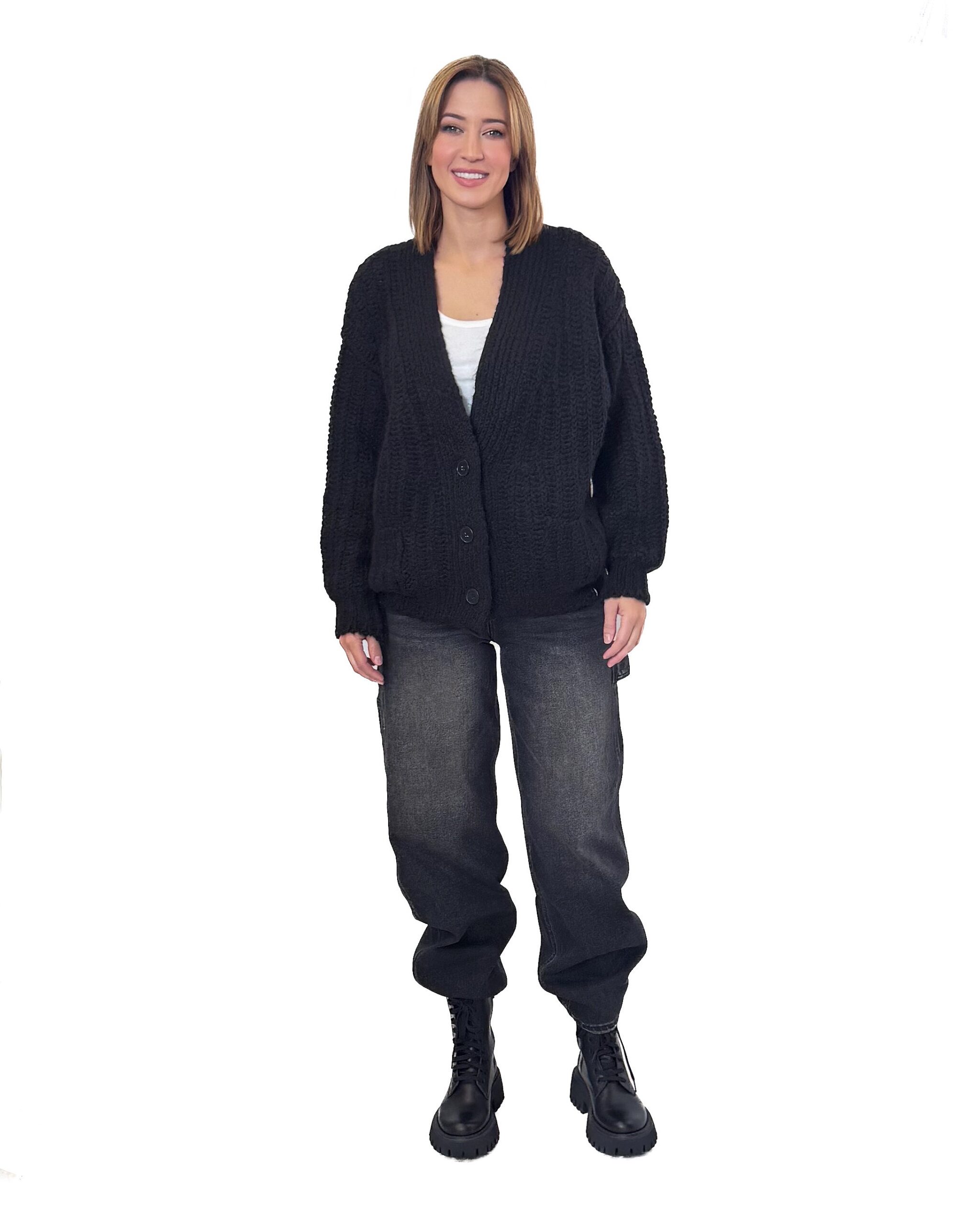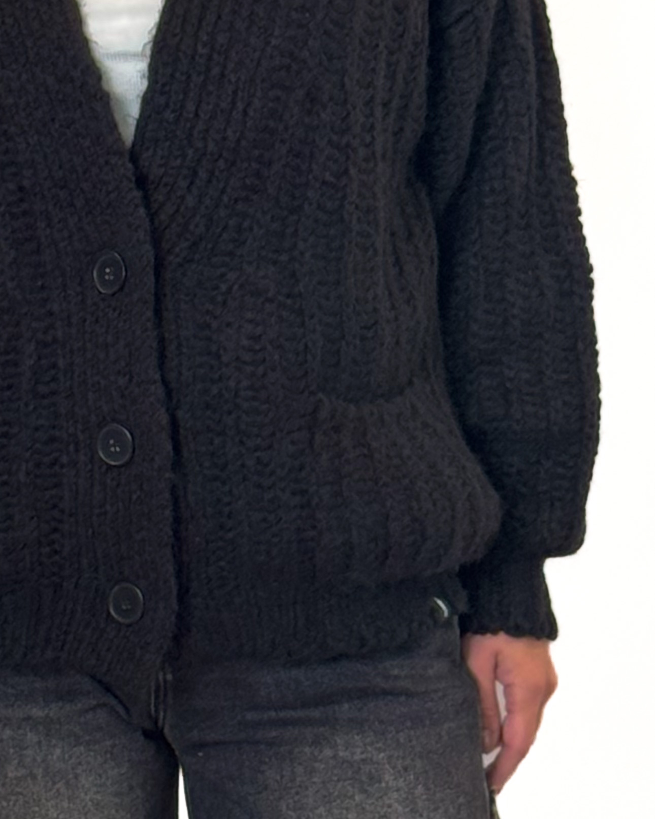 Uniwersalny czarny kolor sprawia, że kardigan łatwo dopasujesz do wielu zestawów – od klasycznych jeansów, przez spódnice, aż po sukienki. To doskonały wybór do pracy, na spotkania czy wieczorne wyjścia, gdy chcesz czuć się komfortowo, a jednocześnie wyglądać szykownie. To ciepły i ponadczasowy kardigan, który posłuży Ci przez wiele sezonów. Dzięki naturalnym włóknom zapewnia komfort noszenia, a klasyczny fason sprawia, że pasuje niemal do wszystkiego.