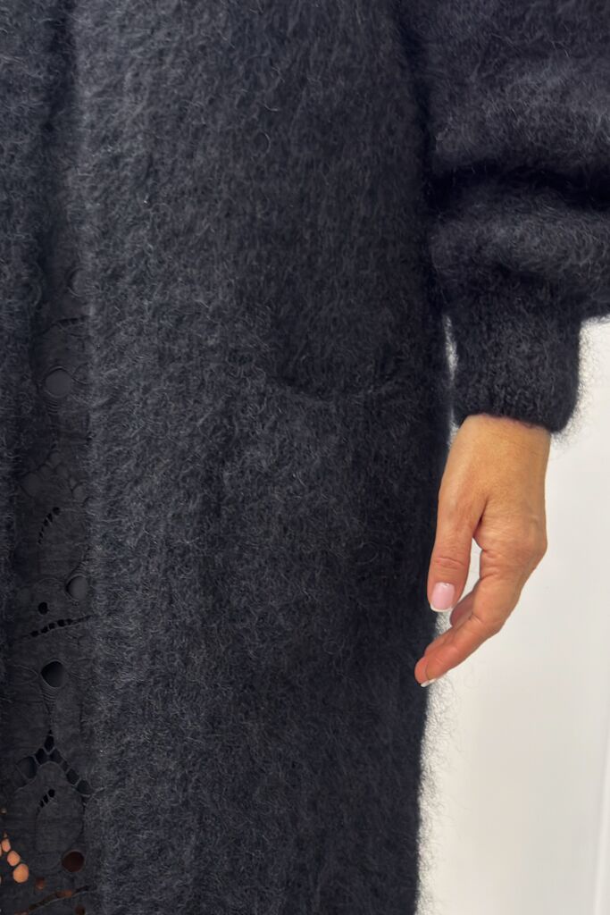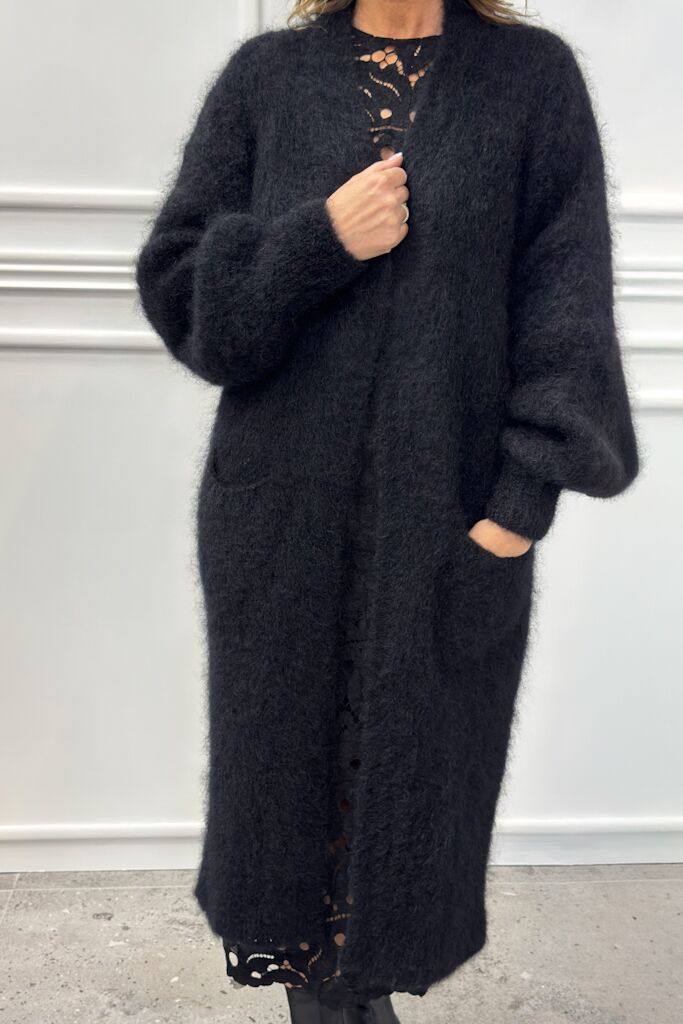Czarny sweter długi kardigan z moherem Souvenir C38L1138