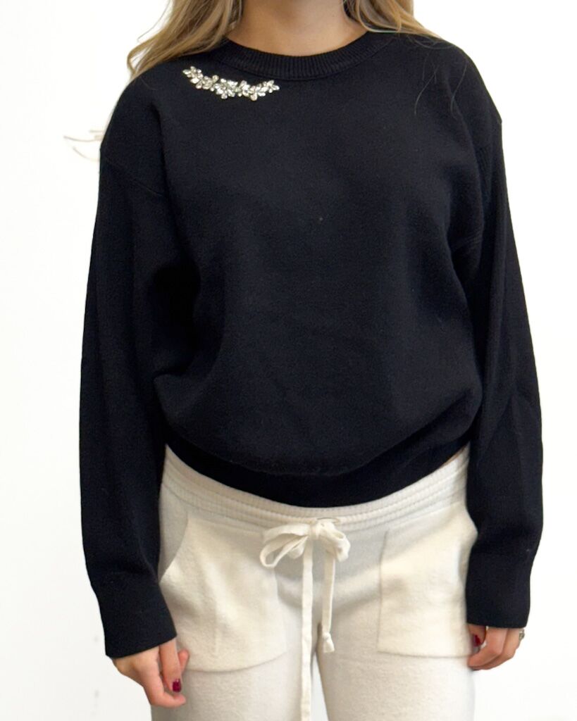 *** Czarny sweter ze srebrnymi kamieniami to idealne połączenie wygody i klasy. Nie czekaj — wybierz ponadczasowy styl i poczuj się wyjątkowo każdego dnia!