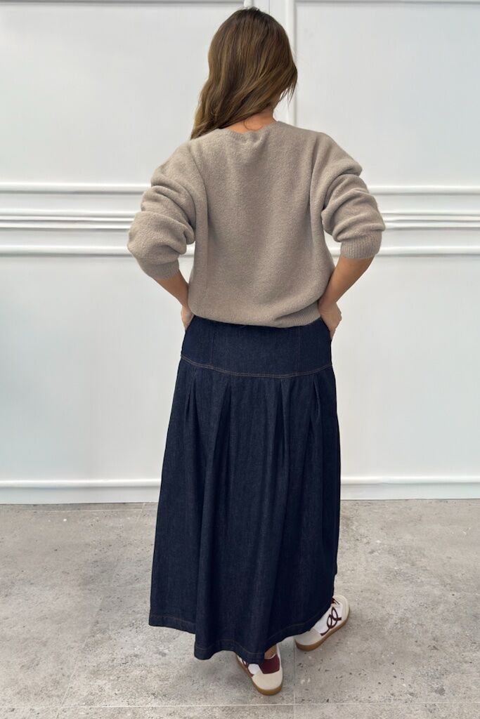 Neutralny, beżowy kolor sprawia, że sweter doskonale komponuje się z wieloma stylizacjami — od casualowych, po bardziej eleganckie. Świetnie wygląda w zestawieniu z jeansami, spódnicami midi oraz klasycznymi spodniami materiałowymi, tworząc stylowy look do pracy, na spotkanie czy na co dzień.
