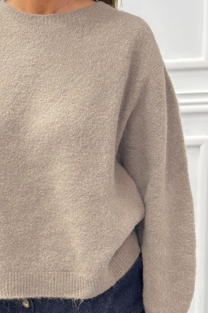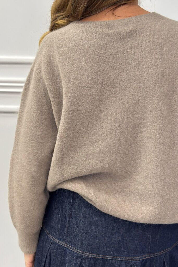 Klasyczny damski beżowy sweter z alpaką od marki Pia B . Miękki, wygodny i stylowy – idealny na co dzień, do pracy i na weekendowe stylizacje.