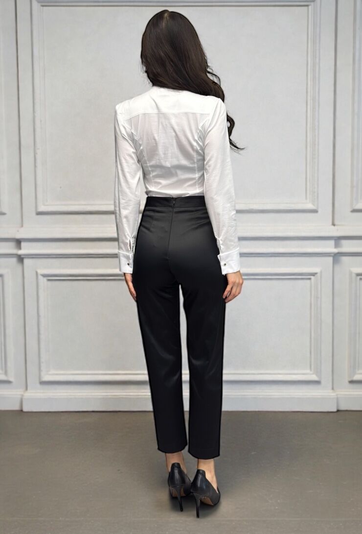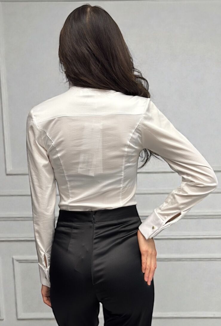 Klasyczny kołnierzyk oraz długie rękawy zakończone eleganckimi mankietami podkreślają profesjonalny i szykowny wygląd, dzięki czemu koszula świetnie komponuje się z garniturem, marynarką, ołówkową spódnicą lub eleganckimi spodniami. Koszula została zaprojektowana z myślą o uniwersalności – doskonale sprawdzi się zarówno w stylizacjach biurowych, jak i bardziej formalnych czy wieczorowych.