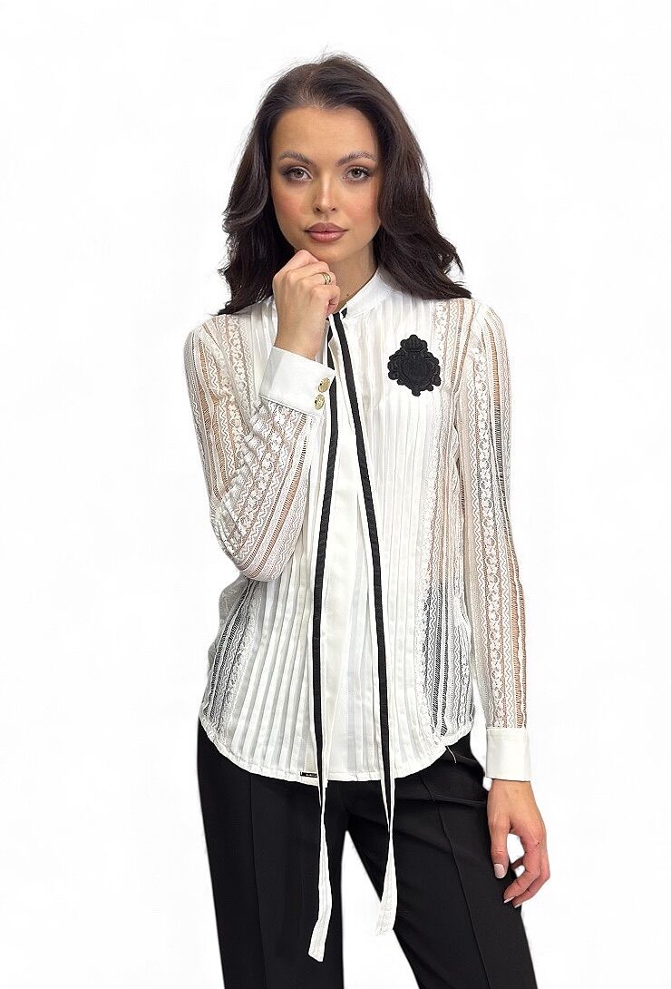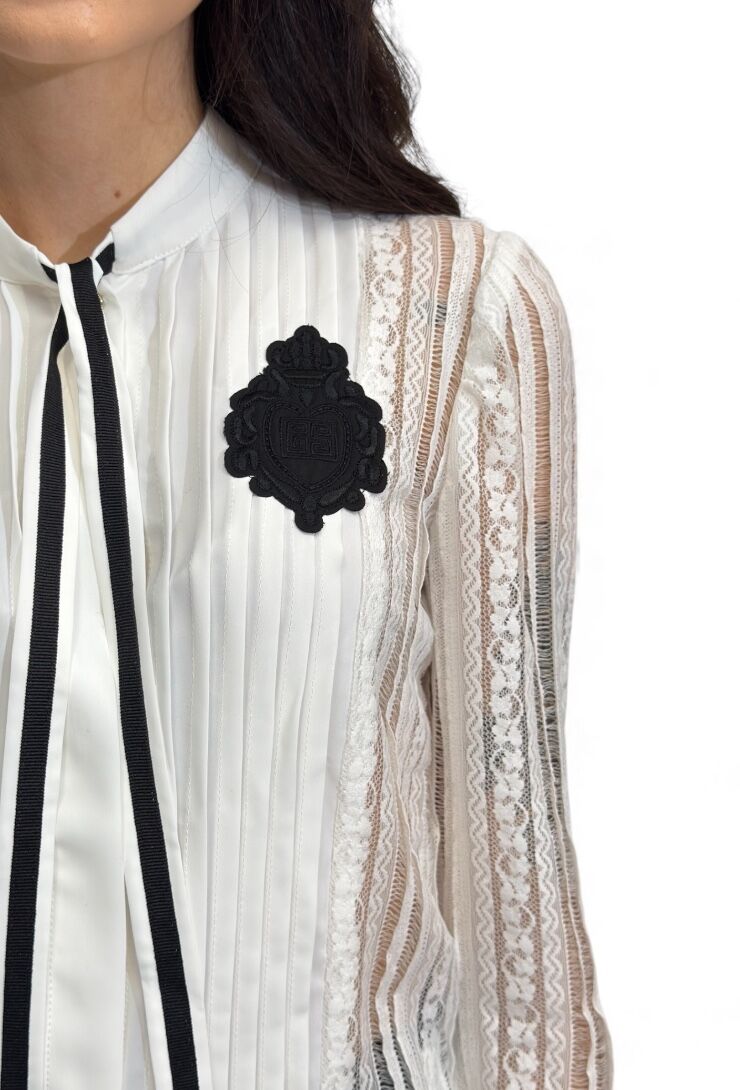 Biała koszula z koronką i plisami Gil Santucci 42XPT931DA