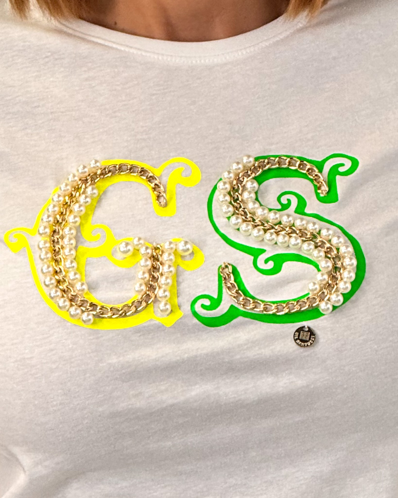 BIAŁY T-SHIRT Z PEREŁKAMI I ŁAŃCUSZKIEM GIL 21CPT589