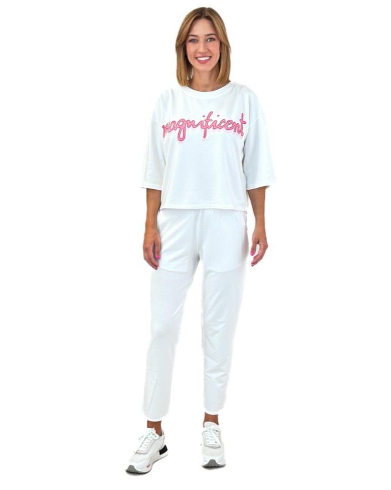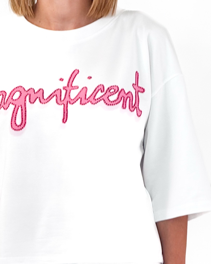 BLUZKA BIAŁA Z RÓŻOWYM NAPISEM I CEKINKAMI MARGITTES 27393