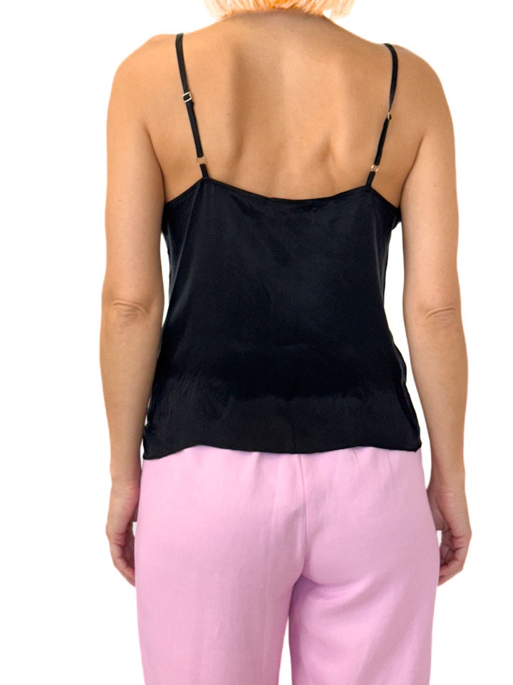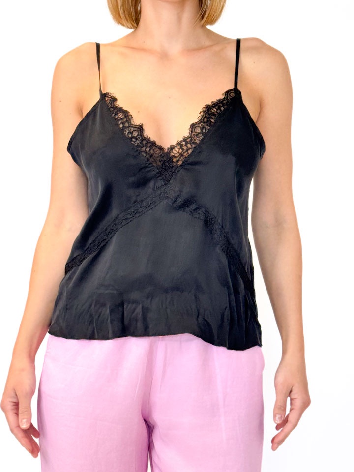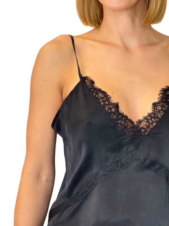 BLUZKA CZARNY TOP NA RAMIĄCZKACH Z CZARNĄ KORONKĄ NOLITA TACEY