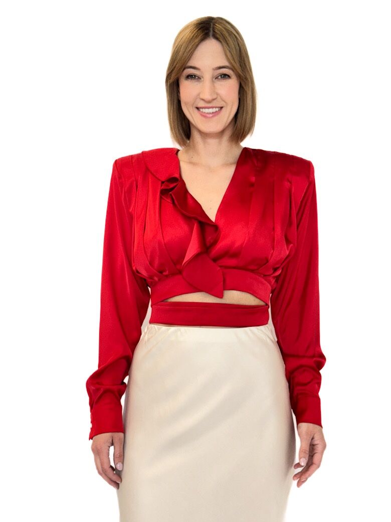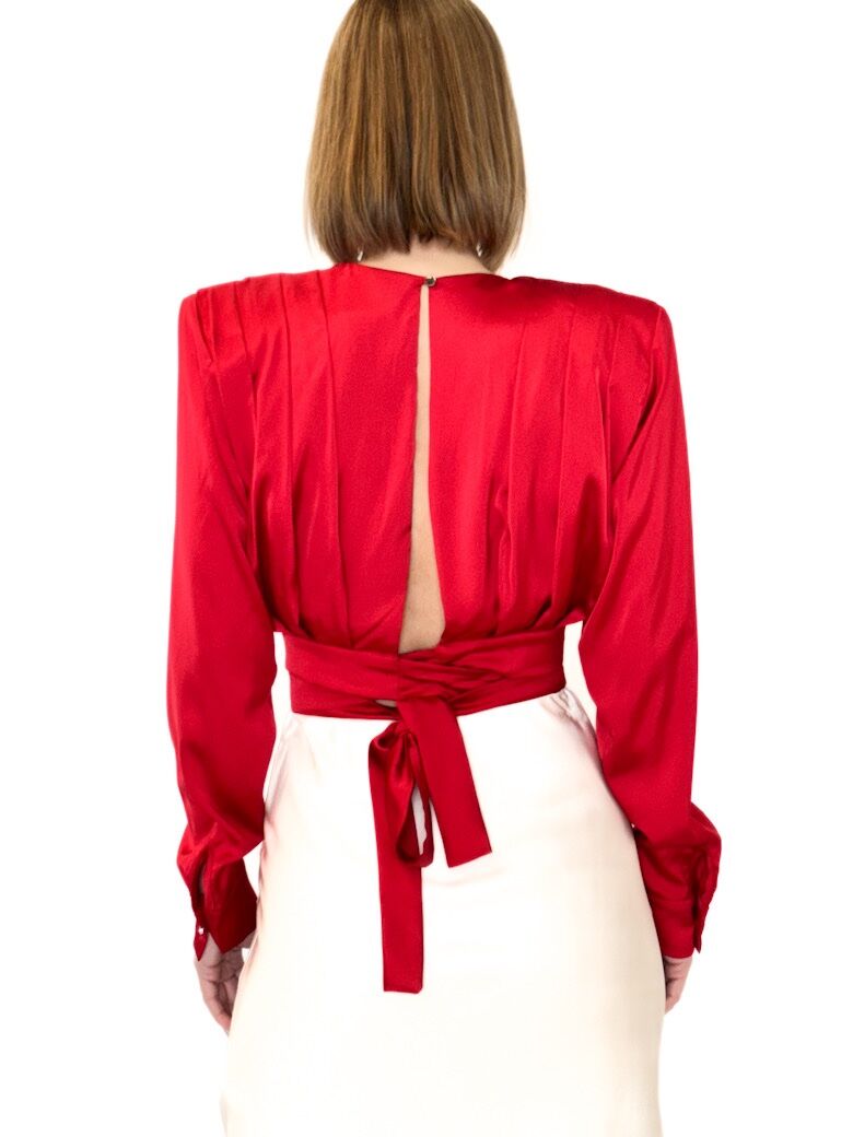 BLUZKA CZERWONA KRÓTKA Z WIĄZANIEM W PASIE REVISE POWELL19