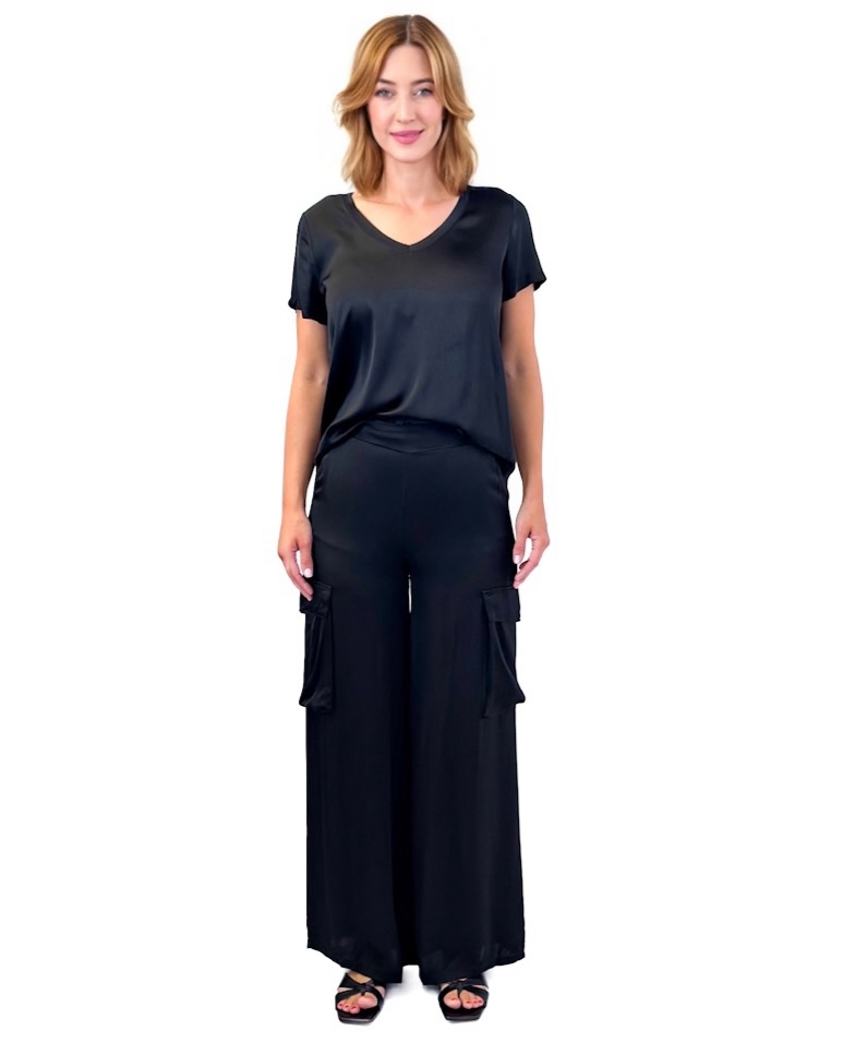 BLUZKA Z KRÓTKIM RĘKAWEM CZARNA Z WISKOZY PIA B SAVICO